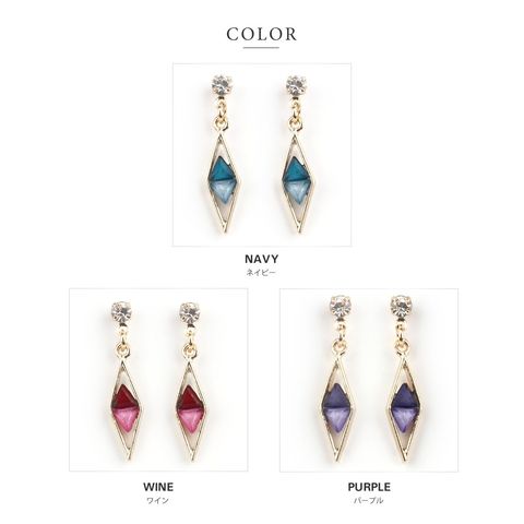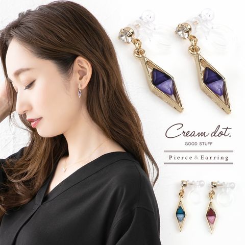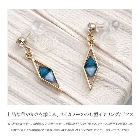 イヤリング ピアス レディース 揺れる ビジュー ひし形 メタル バイカラー cream dot ゆうパケット [ネイビー_ピアス]