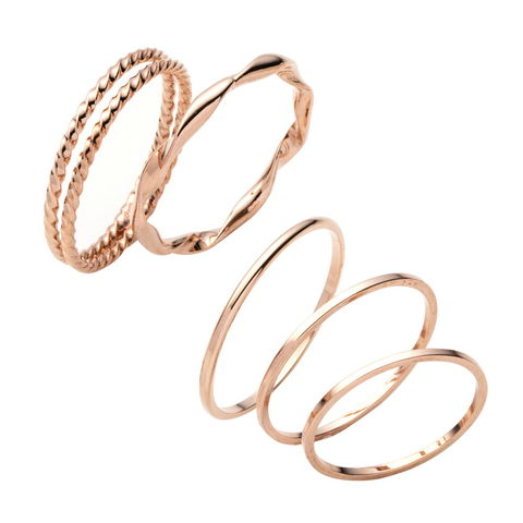 ツイストやシンプルデザインをMIXした、5~15号の華奢なリングを揃えた5点セットリング。