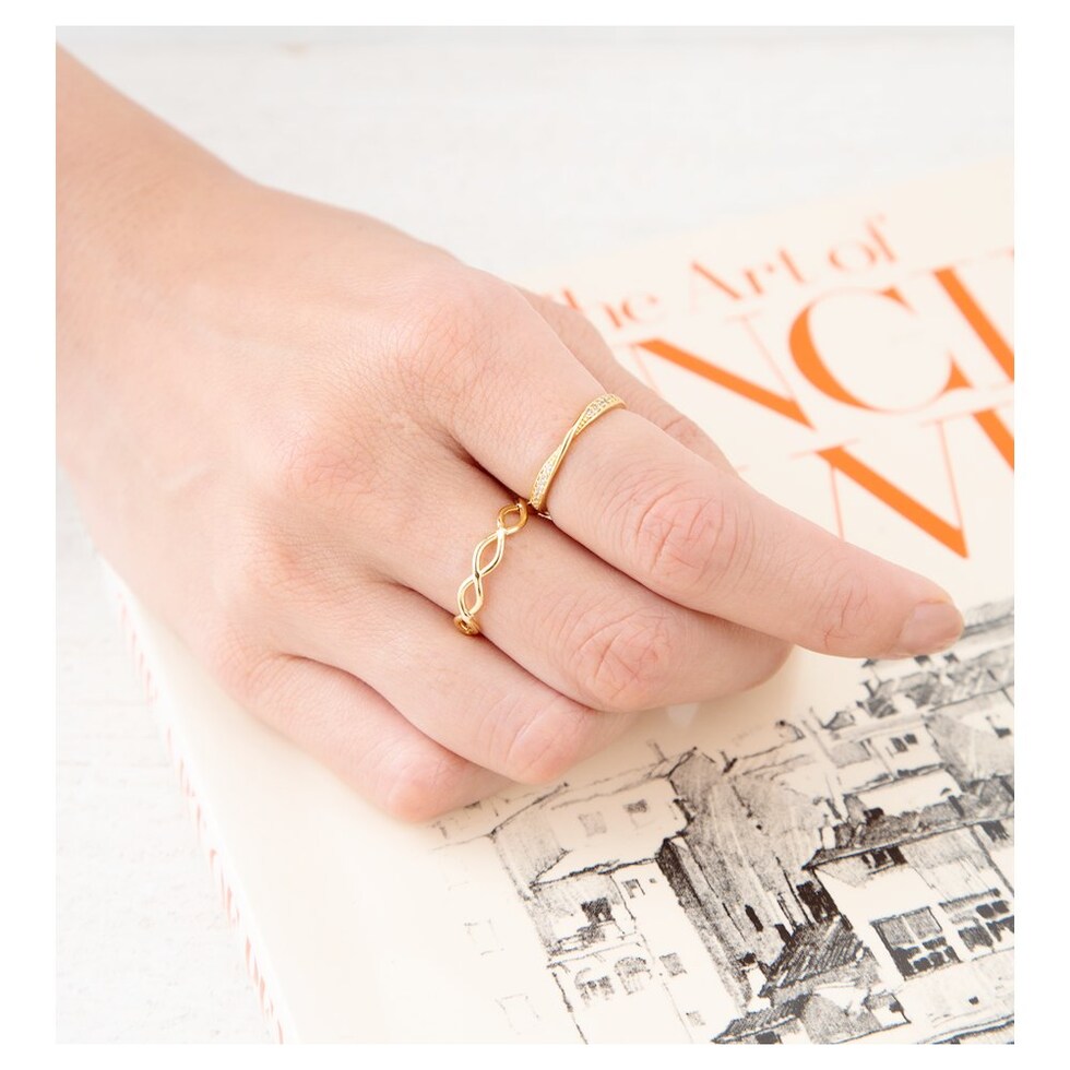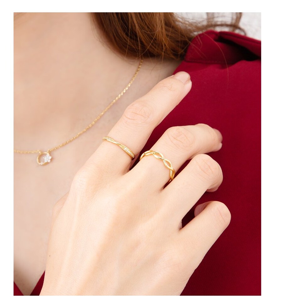 リングの中央でひねりを効かせビジューを配した