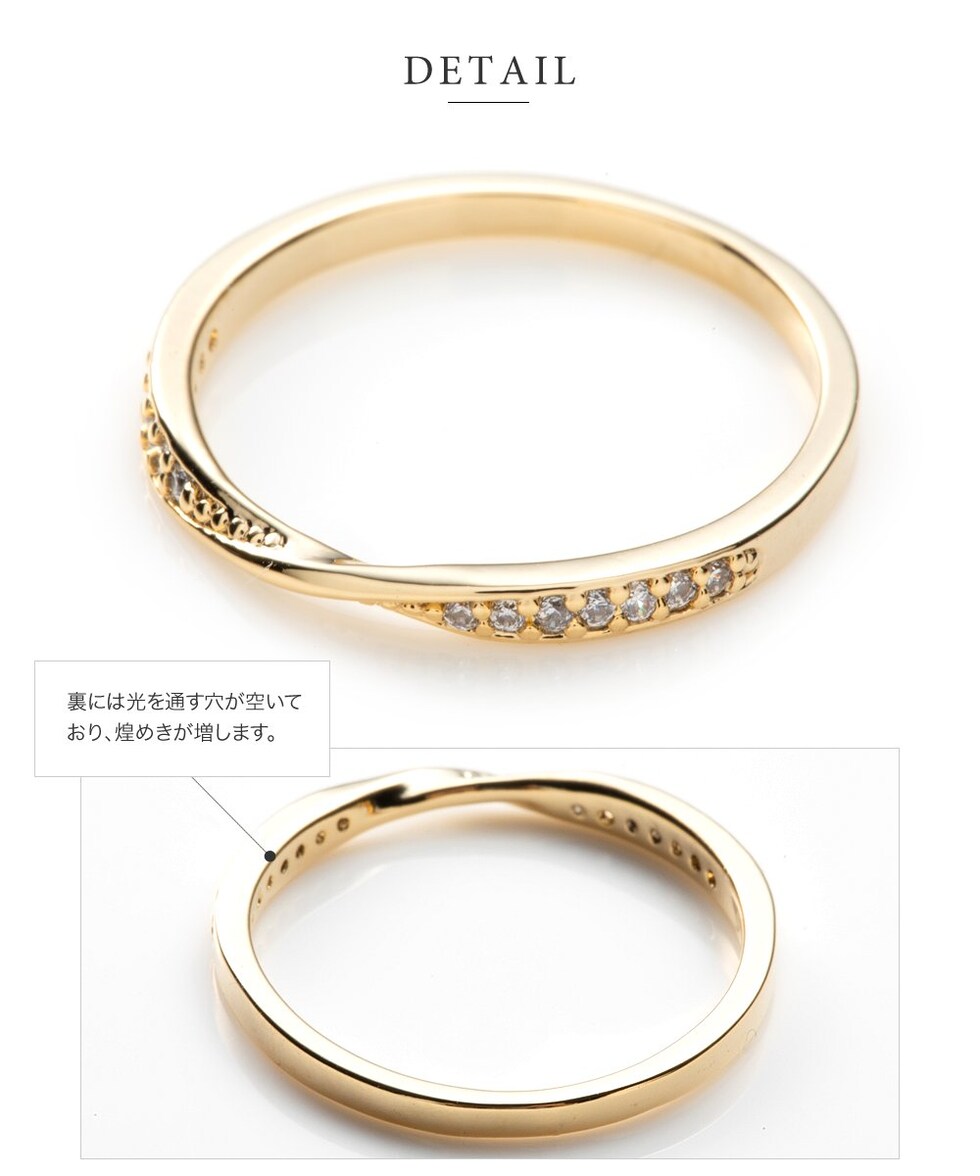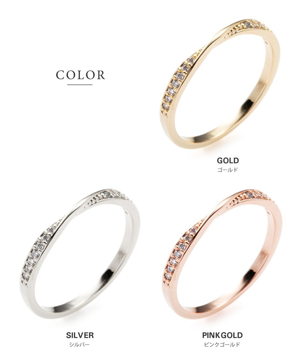リング 指輪 金属アレルギー ニッケルフリー レディース ビジュー ツイスト キュービックジルコニア cream dot ゆうパケット [ピンクゴールド_7号]
