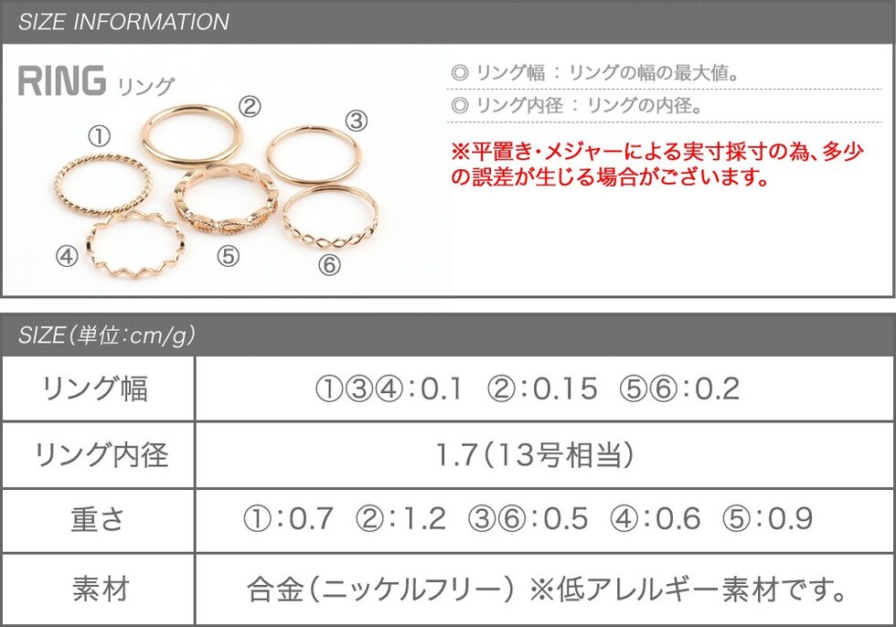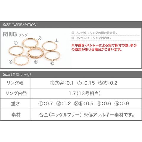 リング幅 1,3,4:0.1cm 2:0.15cm 5,6:0.2cm