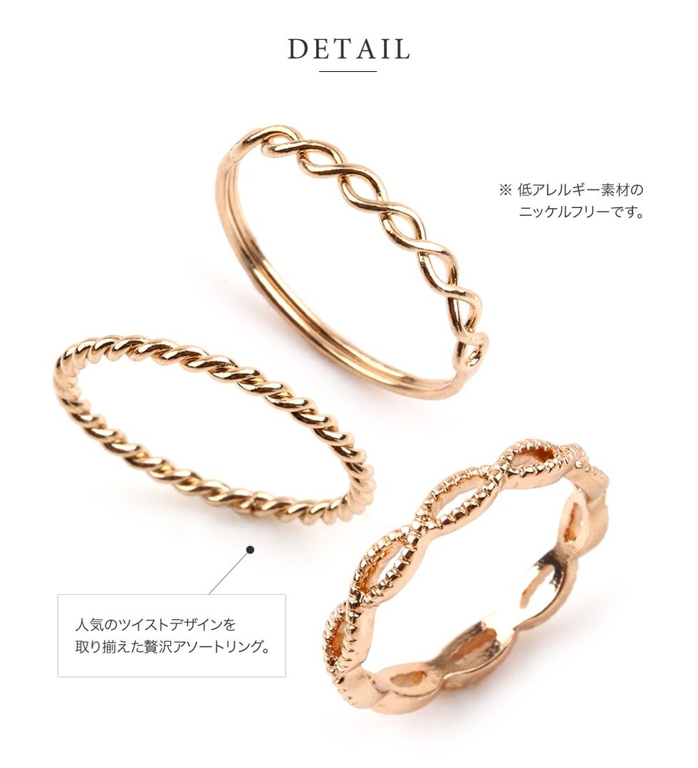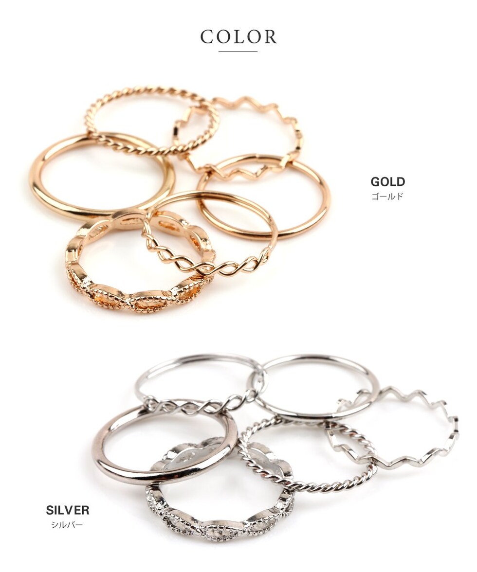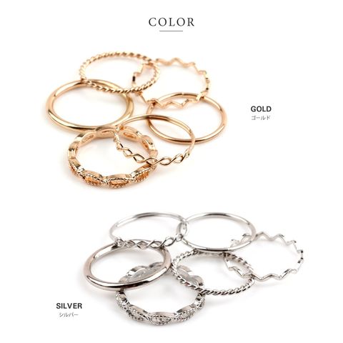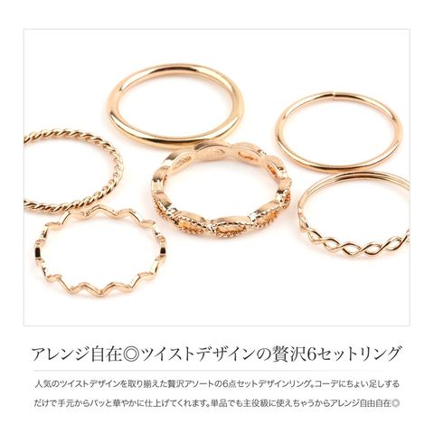 人気のツイストデザインを取り揃えた贅沢アソートの6点セットデザインリング。