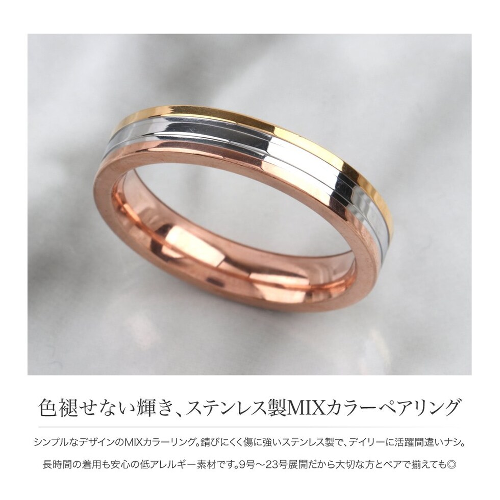 リング 指輪 ステンレス 金属アレルギー サージカルステンレス レディース つけっぱなし ペアリング メンズ バイカラー cream dot ゆうパケット [ミックス_20号]