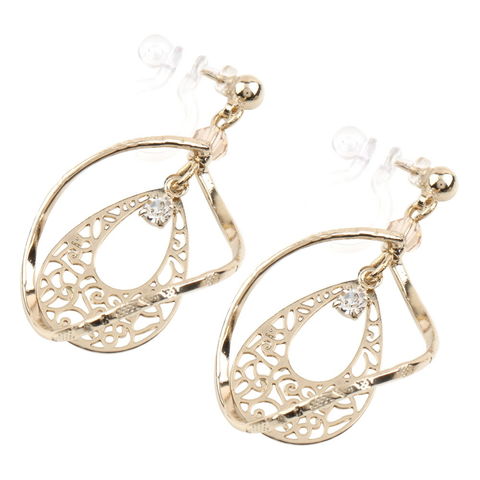 透かしプレートと一粒ビジューが煌くドロップモチーフのピアス/イヤリング。