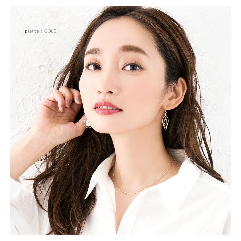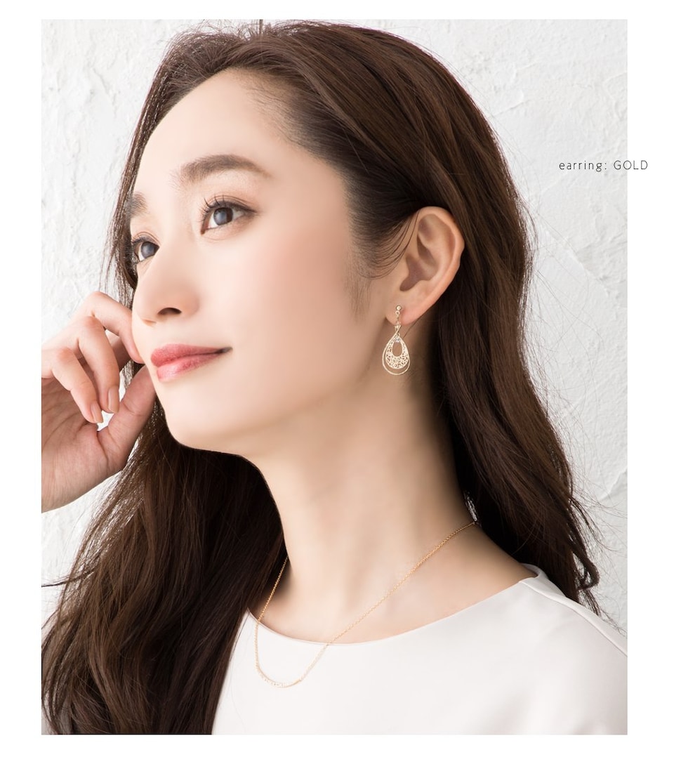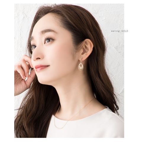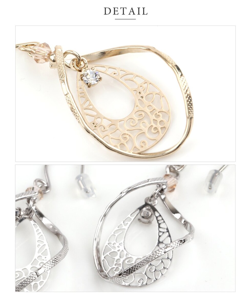 透かしプレートと一粒ビジューが煌くドロップモチーフのピアス/イヤリング。