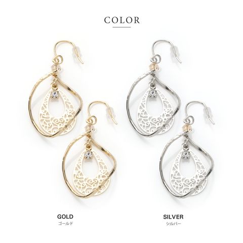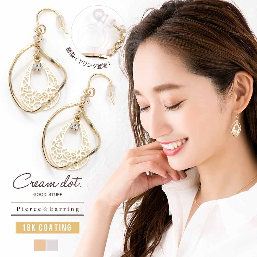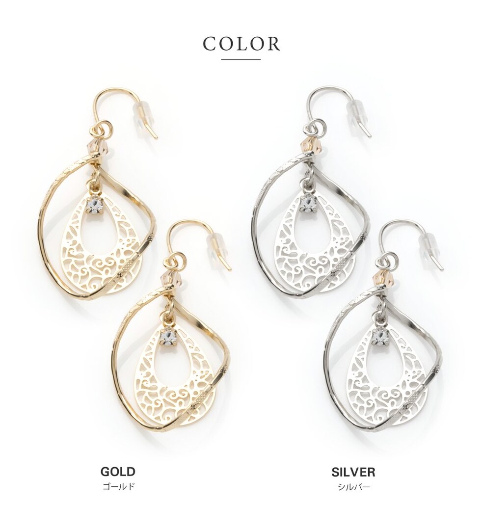 ピアス イヤリング 金属アレルギー ニッケルフリー レディース 揺れる フック ビジュー 透かし cream dot ゆうパケット [シルバー_ピアス]