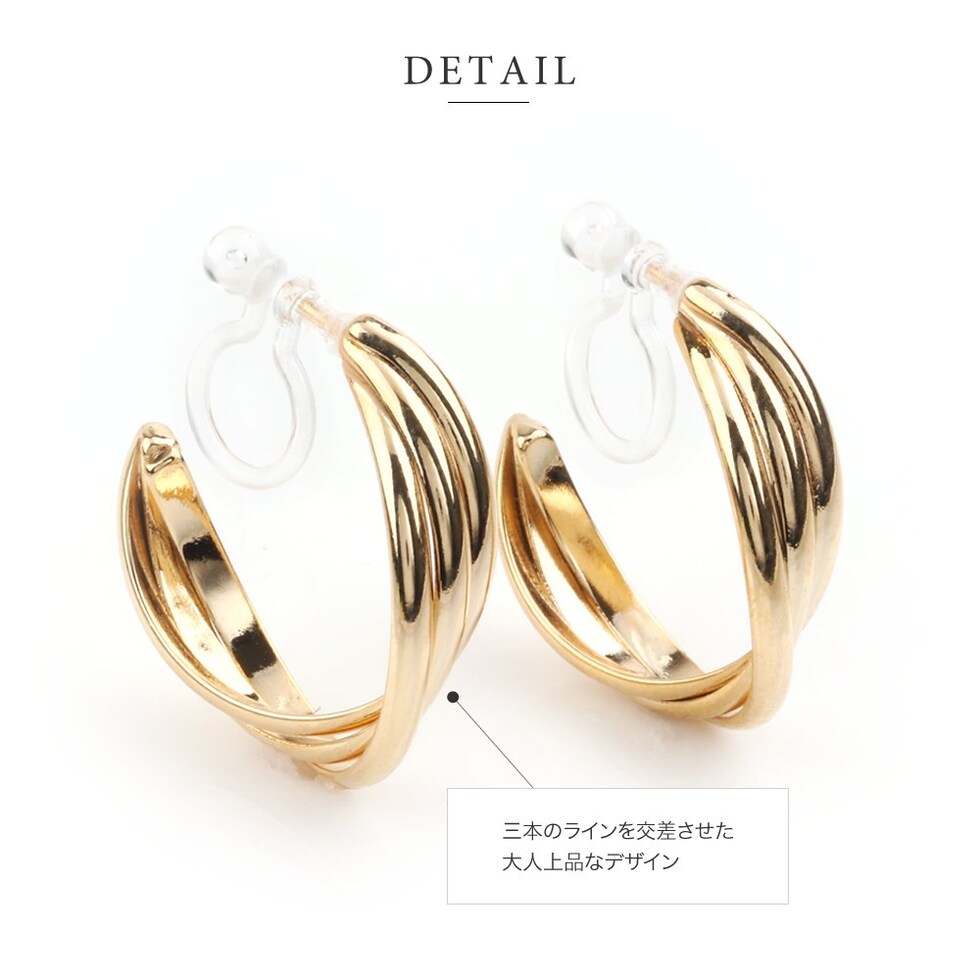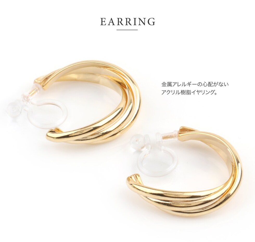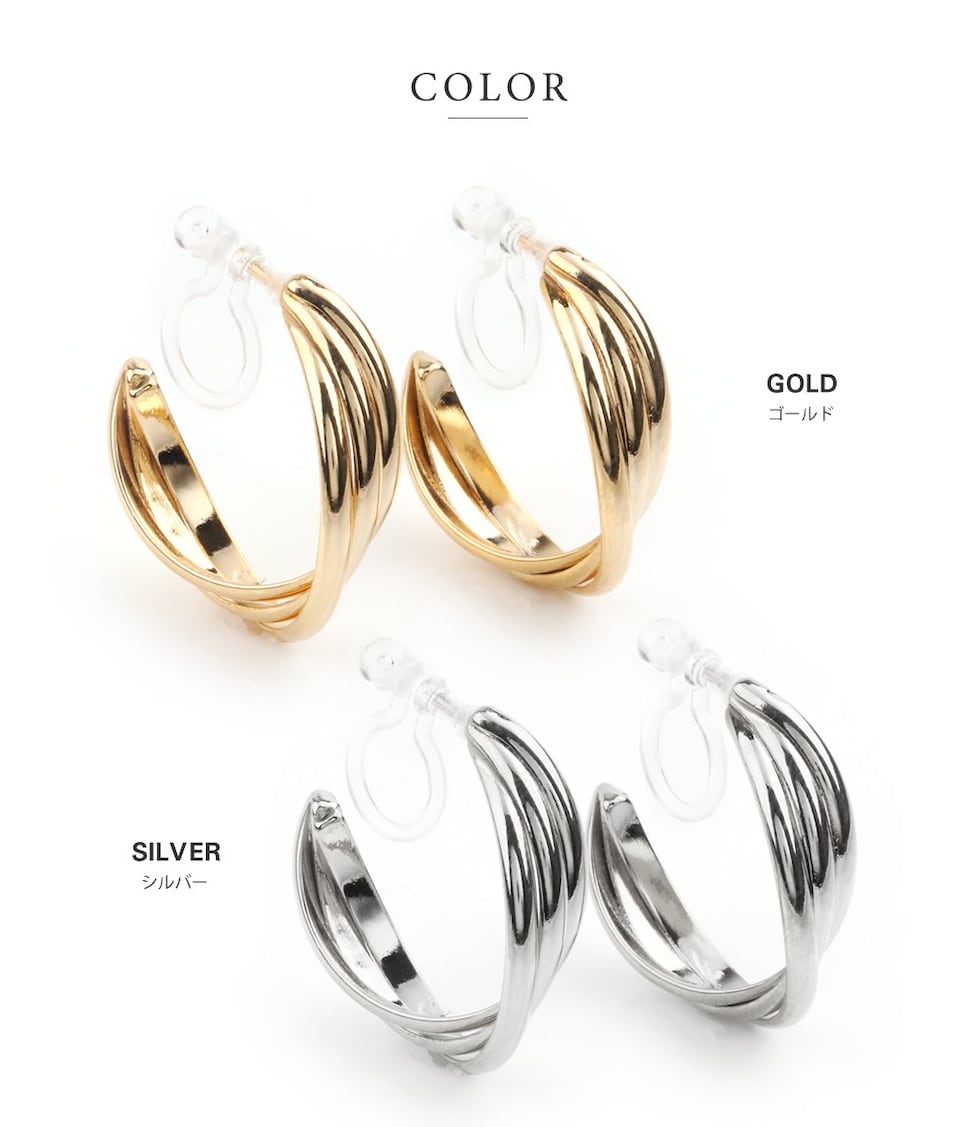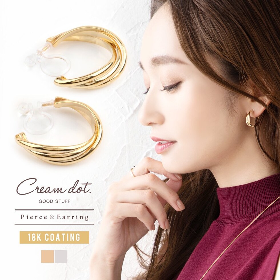 ピアス イヤリング 金属アレルギー ニッケルフリー レディース ポスト に見える フープ クロス cream dot ゆうパケット [ゴールド_ピアス]