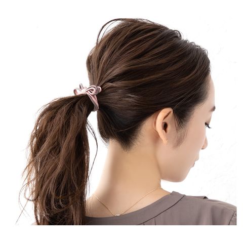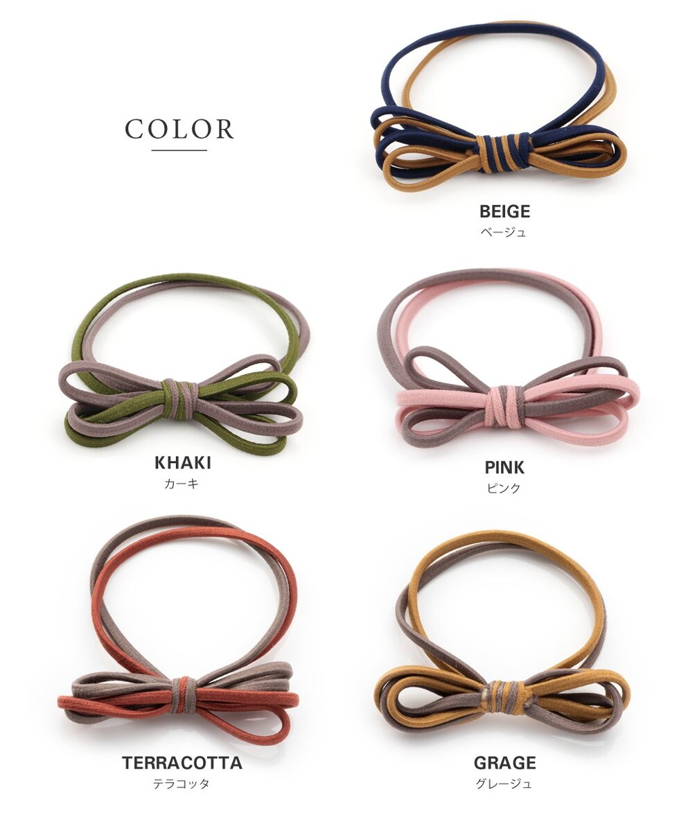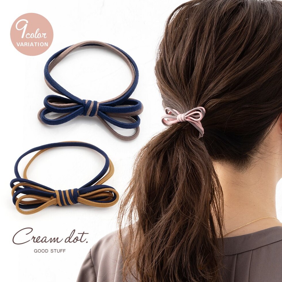 ヘアアクセサリー レディース 9色 ヘアゴム 細 リボン ヘアアレンジ グレージュ cream dot ゆうパケット [ピンク_ワンサイズ]