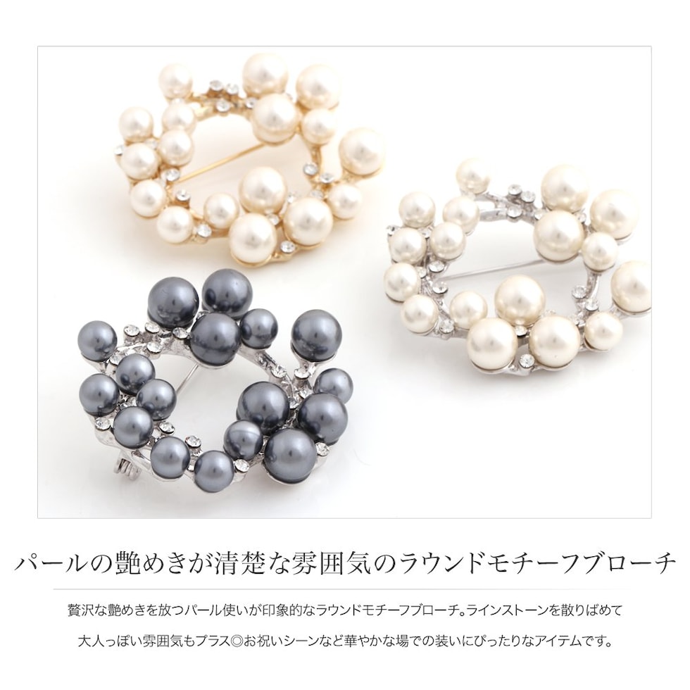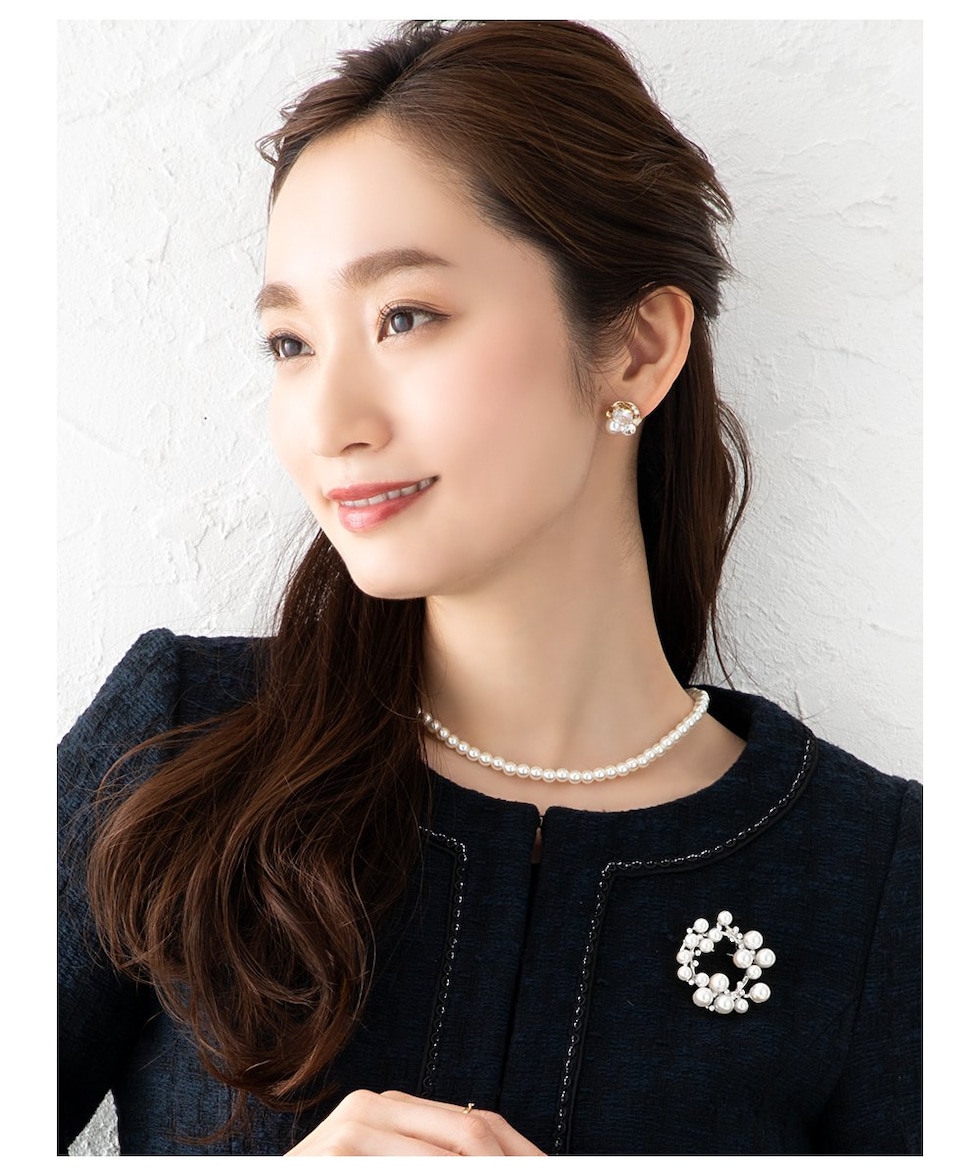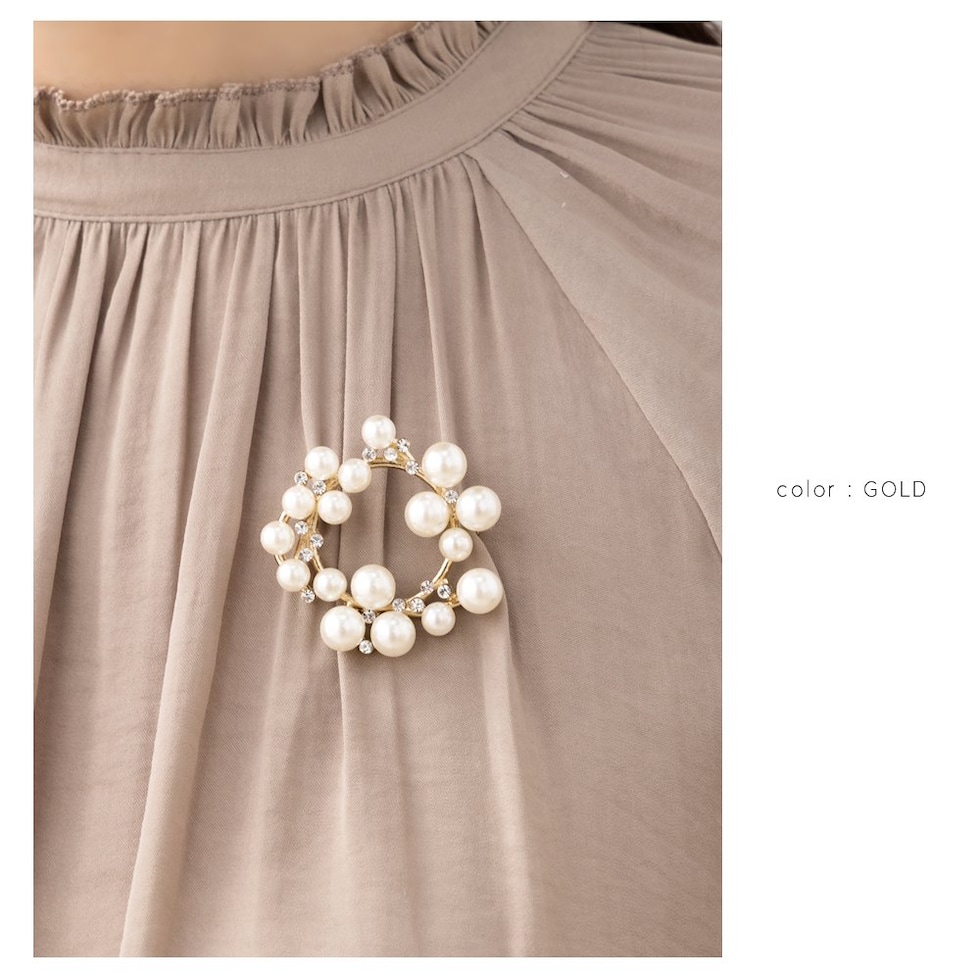 贅沢な艶めきを放つパール使いが印象的なラウンドモチーフブローチ。