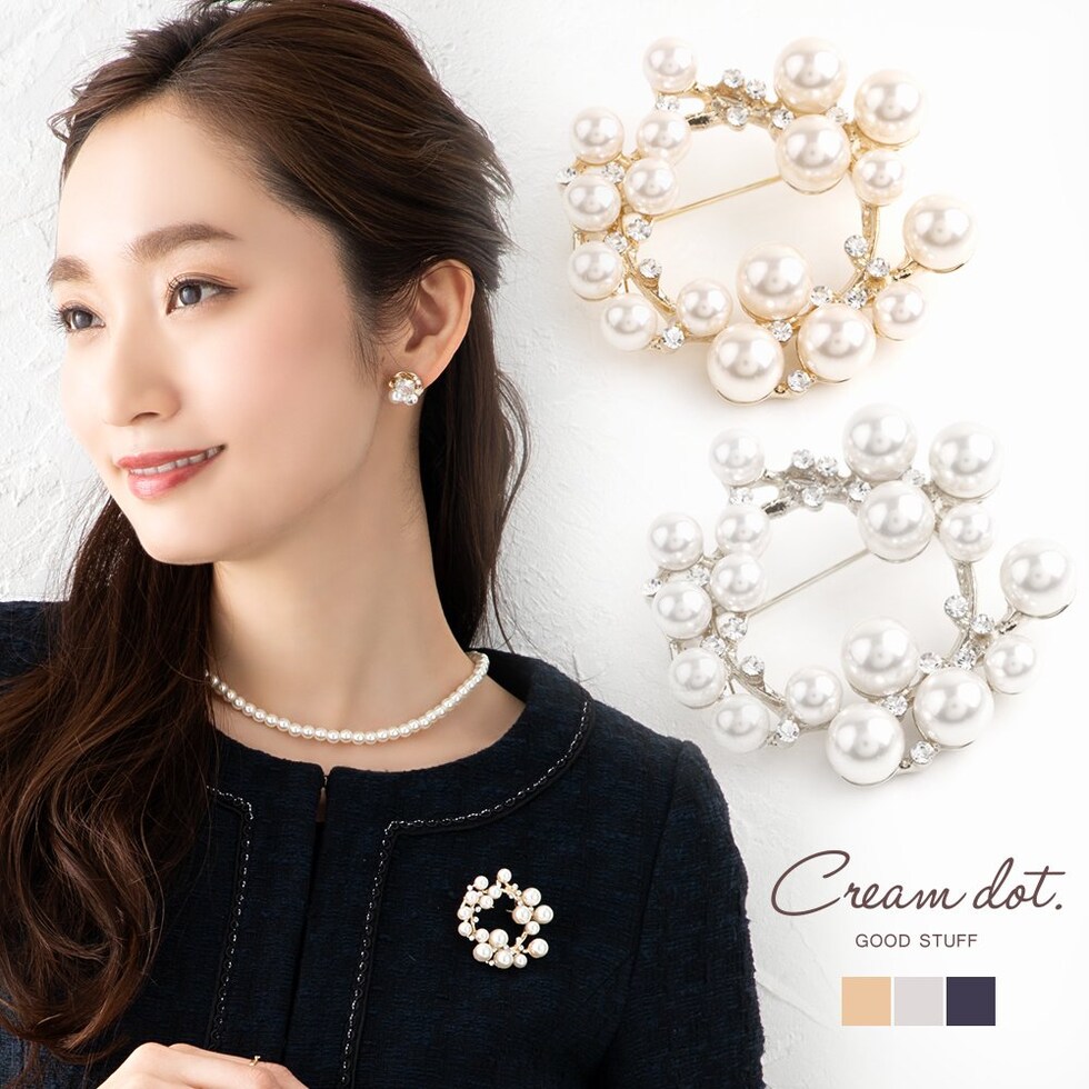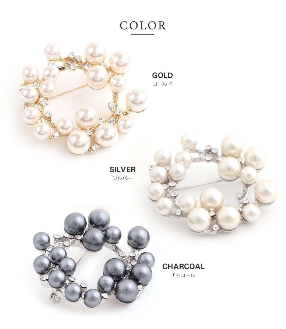 ブローチ フォーマル 卒業式 卒園式 入学式 入園式 セレモニー ママスーツ パール キュービックジルコニア ピン チャコール cream dot ゆうパケット [シルバー_ワンサイズ]