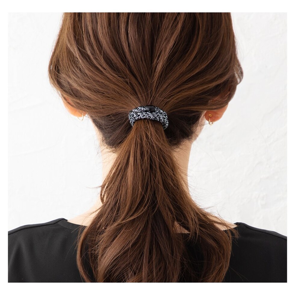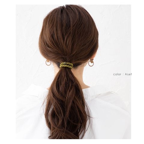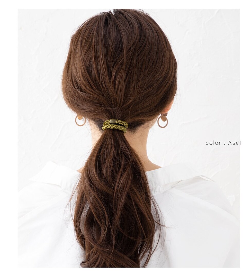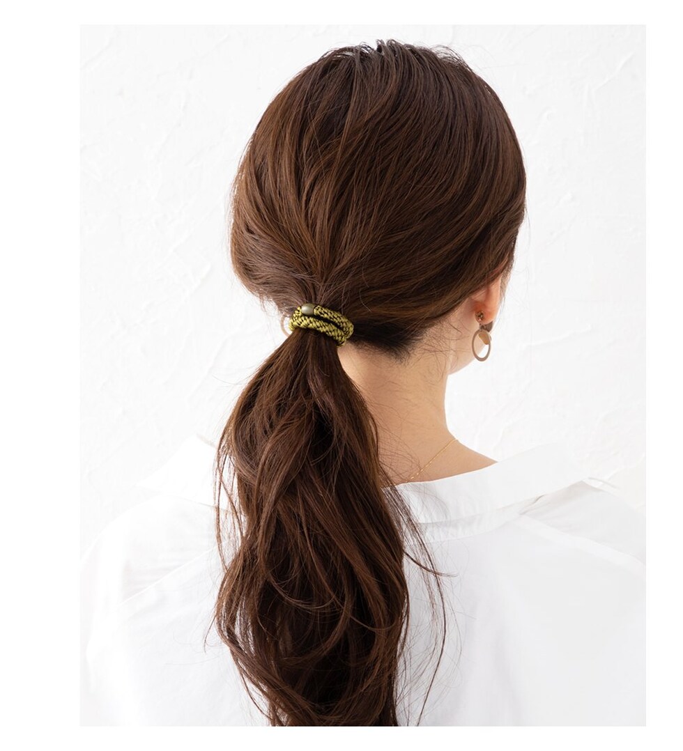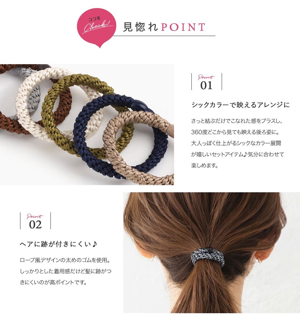 ロープ風デザインの太めのゴムを使用。しっかりとした着用感だけど髪に跡がつきにくいのが高ポイントです。