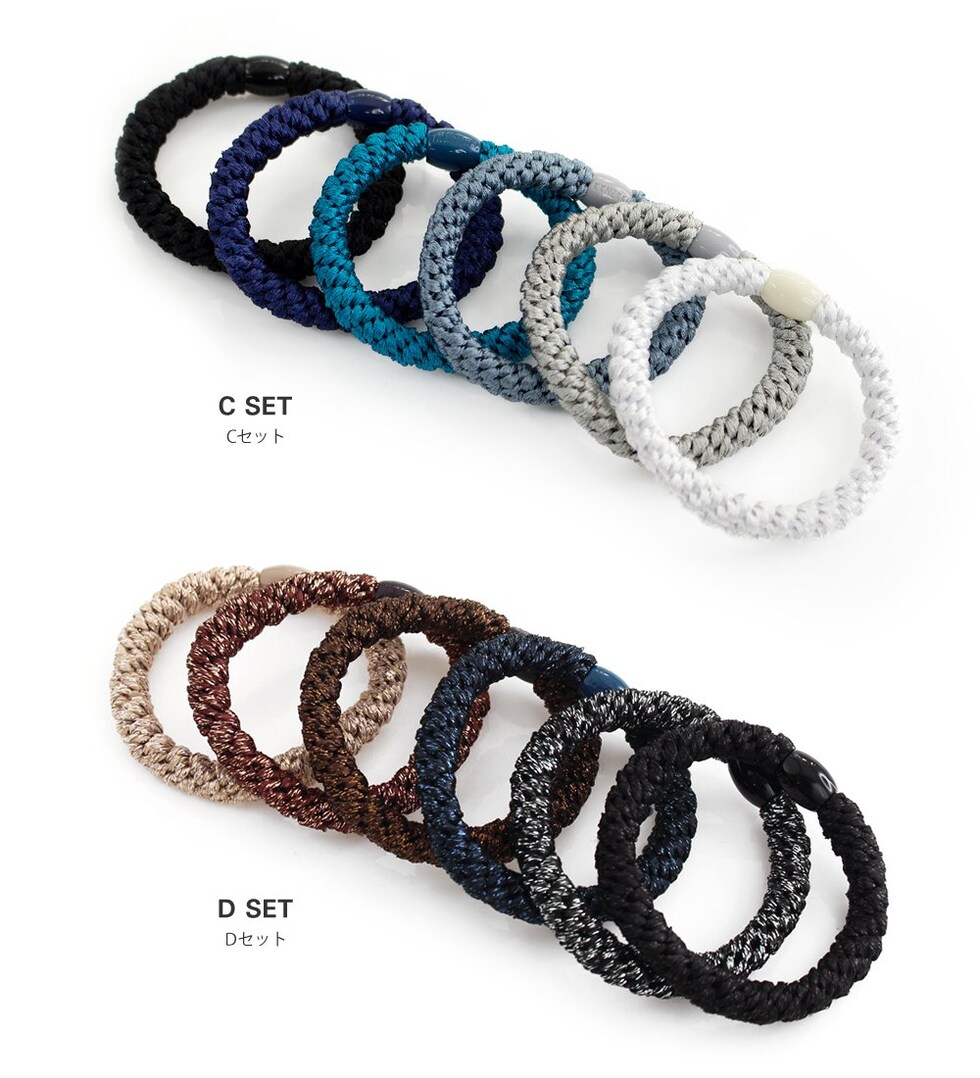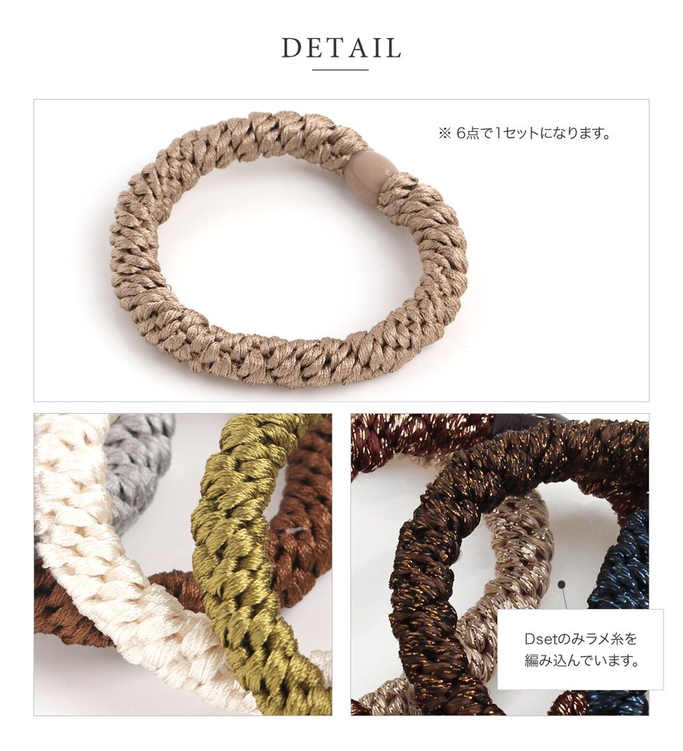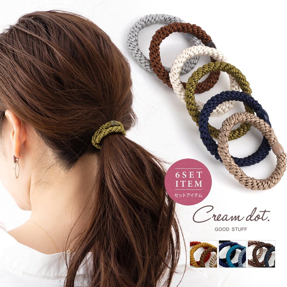 ヘアアクセサリー レディース 6色セット ヘアゴム ロープ風 4タイプ ラメ ネイビー cream dot ゆうパケット [Cセット_ワンサイズ]