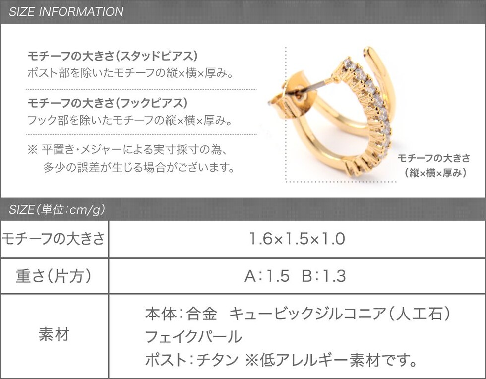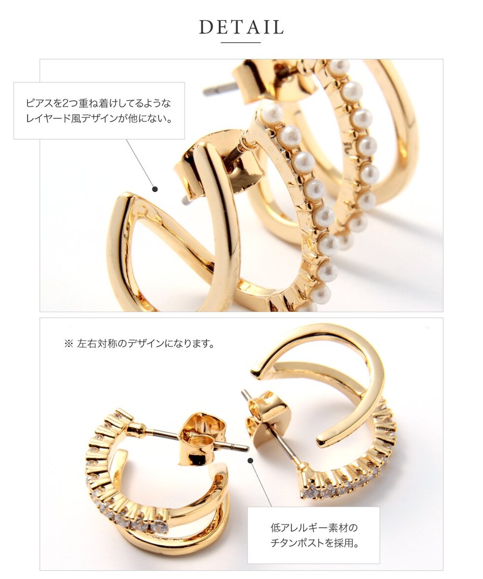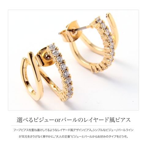 ピアス レディース レイヤード風 重ねづけ キュービックジルコニア パール フープ cream dot ゆうパケット [B:ゴールド_ピアス]