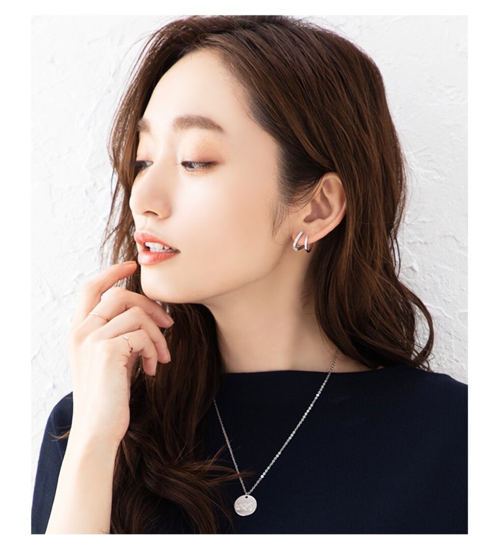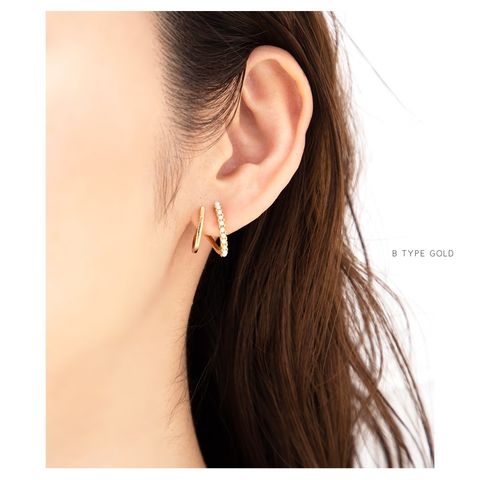 フープピアスを重ね着けしてるようなレイヤード風デザインピアス。