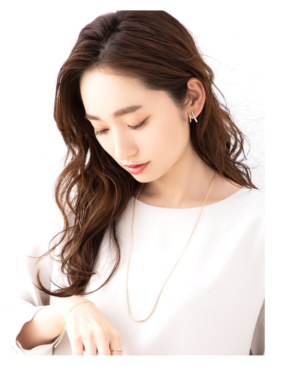 シンプルなビジュー/パールラインが耳元をさりげなく華やかに。
