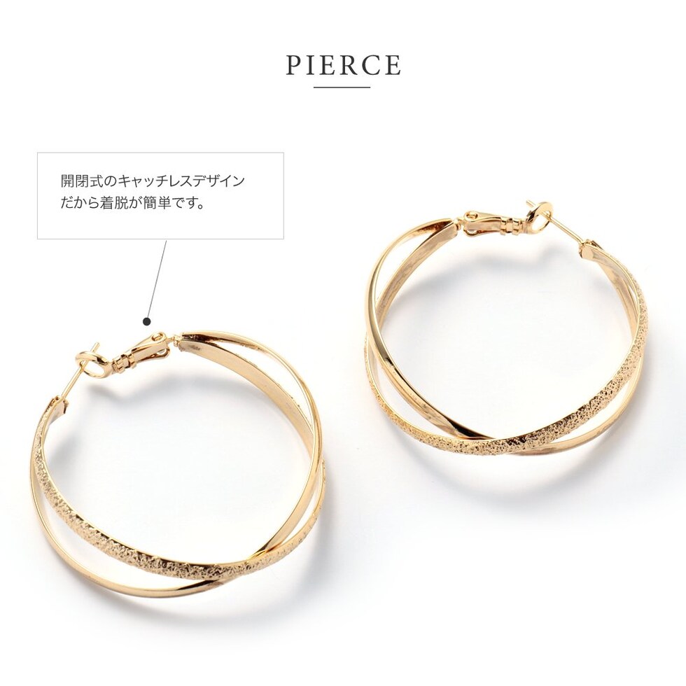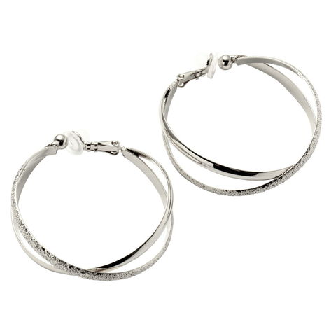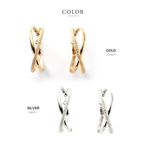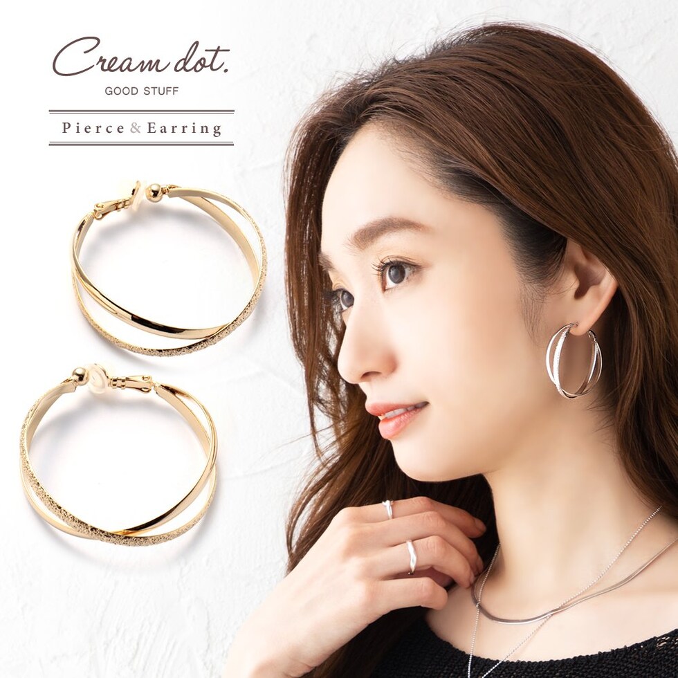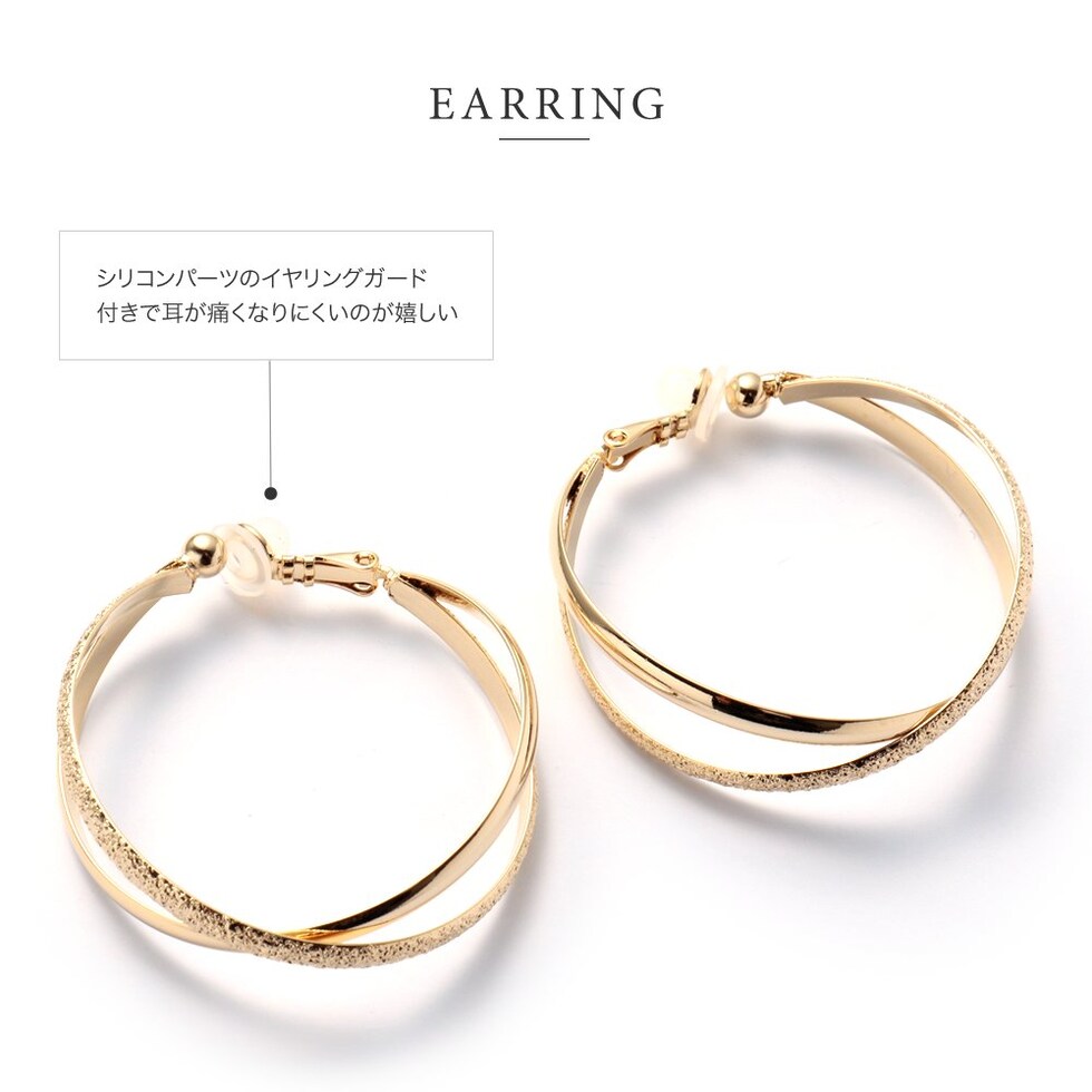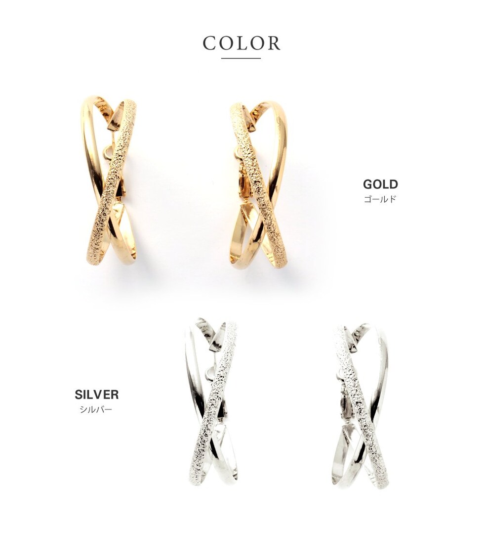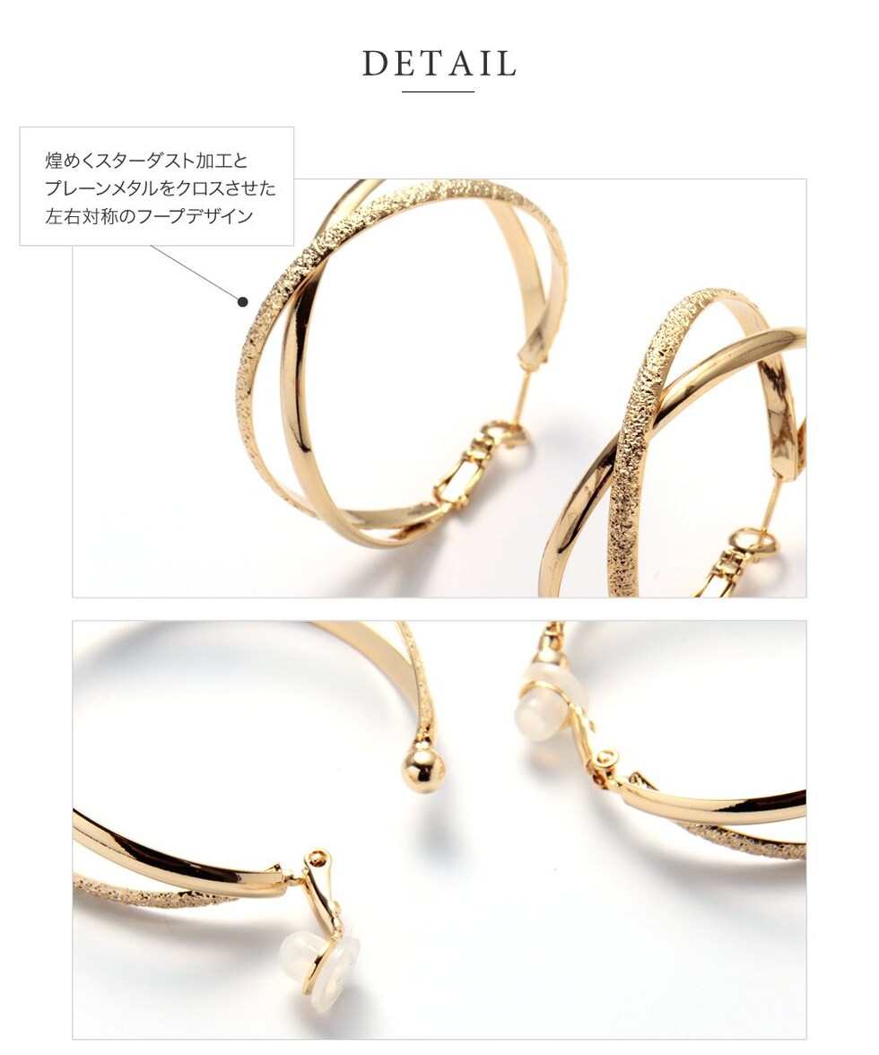 ピアス イヤリング レディース フープ シリコンカバー クリップ式 大ぶり キャッチレス スターダスト加工 クロスライン メタル cream dot ゆうパケット [シルバー_イヤリング]