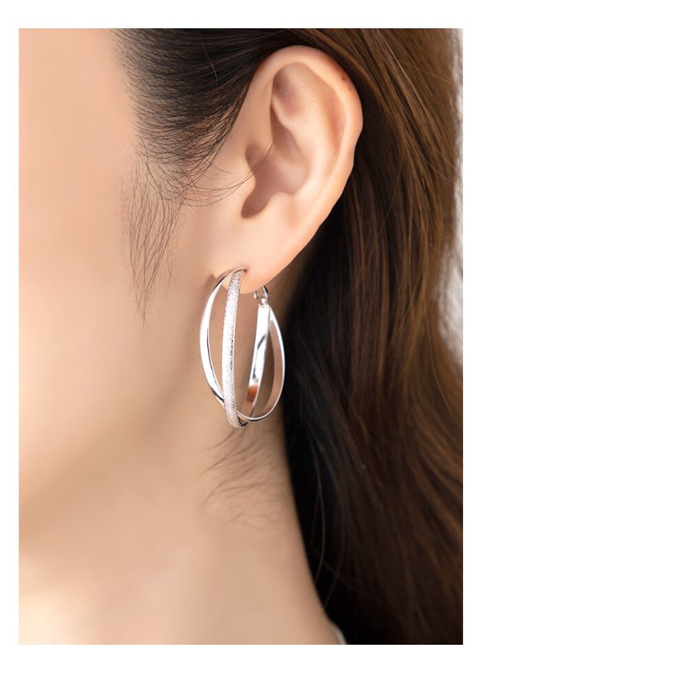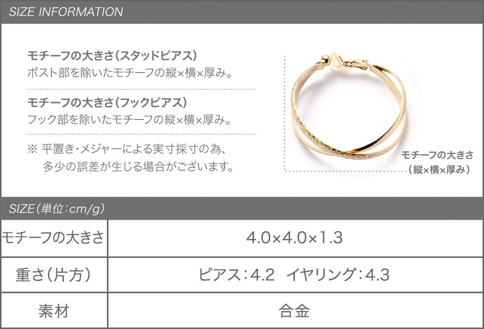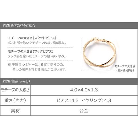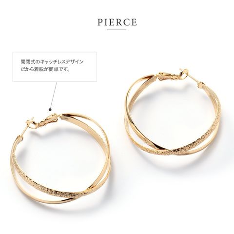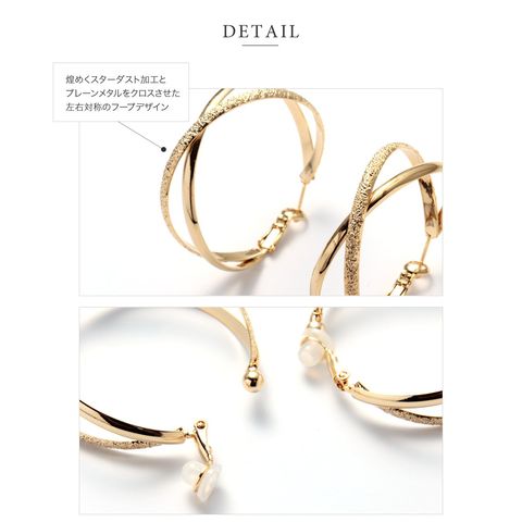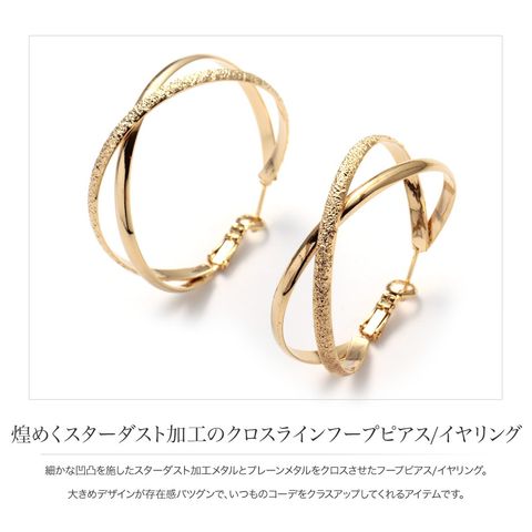 細かな凹凸を施したスターダスト加工メタルとプレーンメタルをクロスさせたフープピアス/イヤリング。