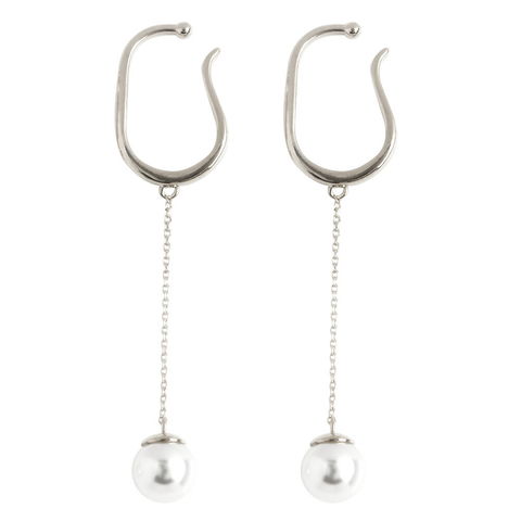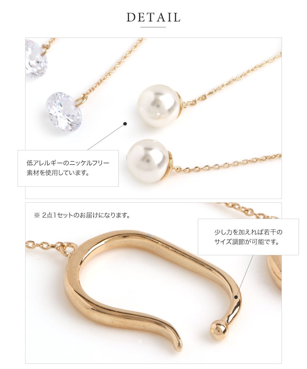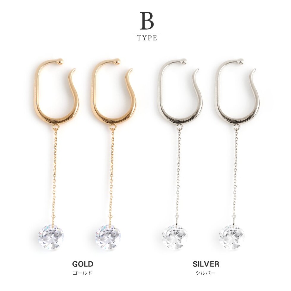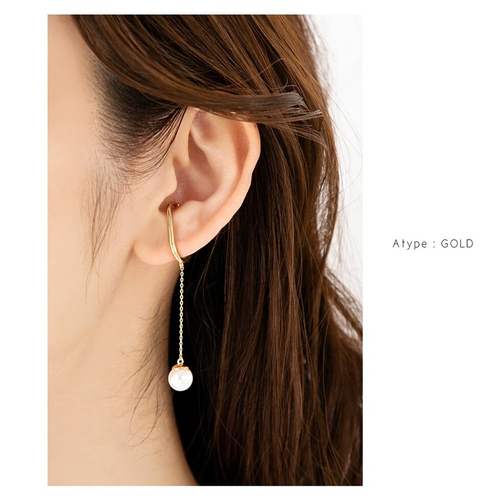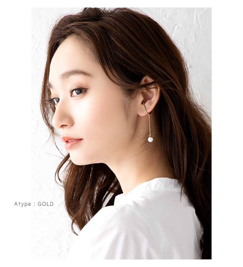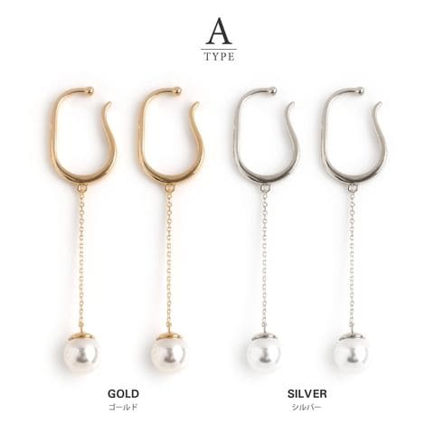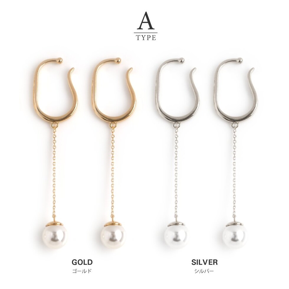 イヤーカフ 金属アレルギー ニッケルフリー レディース イヤーカフ 両耳用 イヤカフ メタル ロングチェーン 揺れる キュービックジルコニア パール cream dot ゆうパケット [A:シルバー_フリーサイズ]