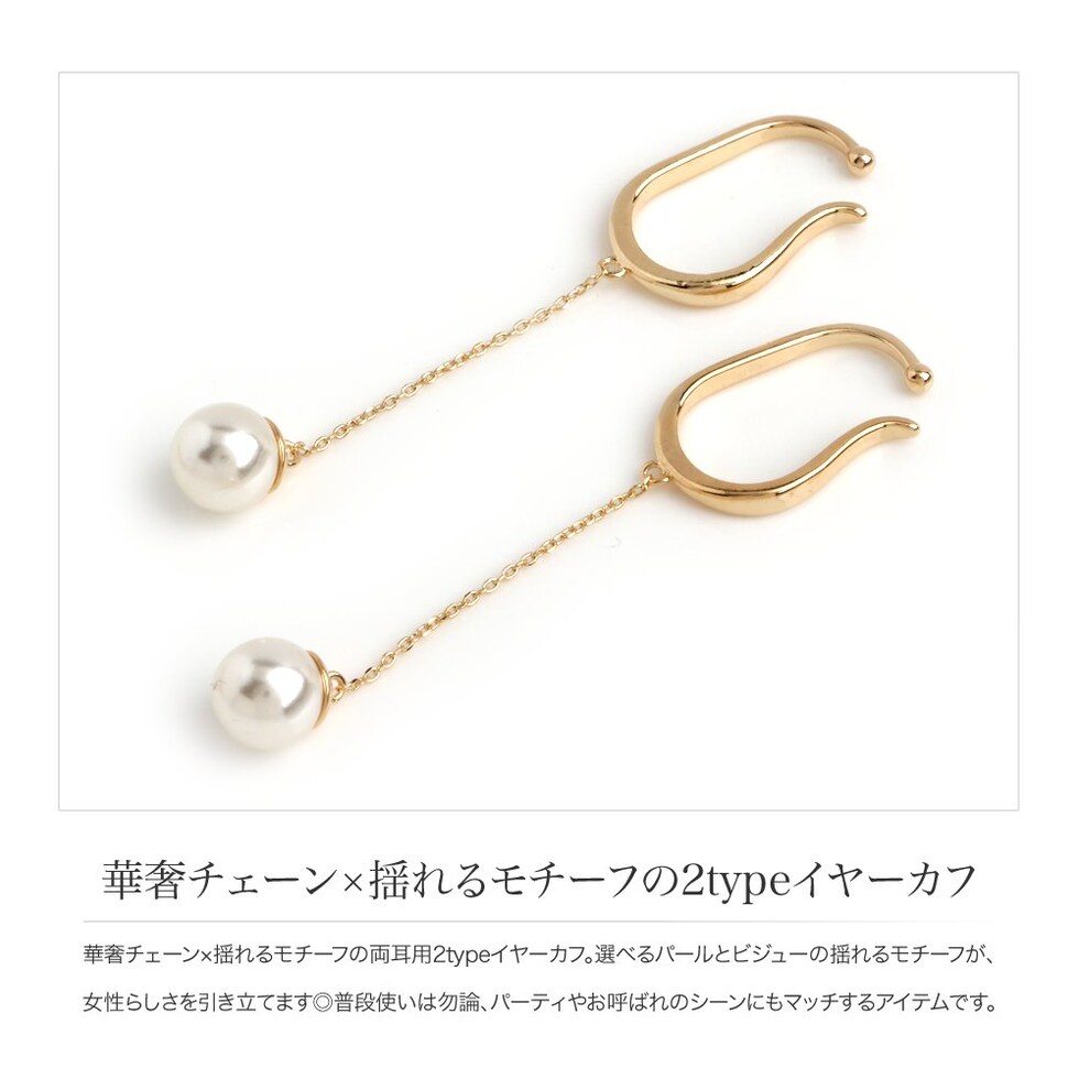 華奢チェーン×揺れるモチーフの両耳用2typeイヤーカフ。