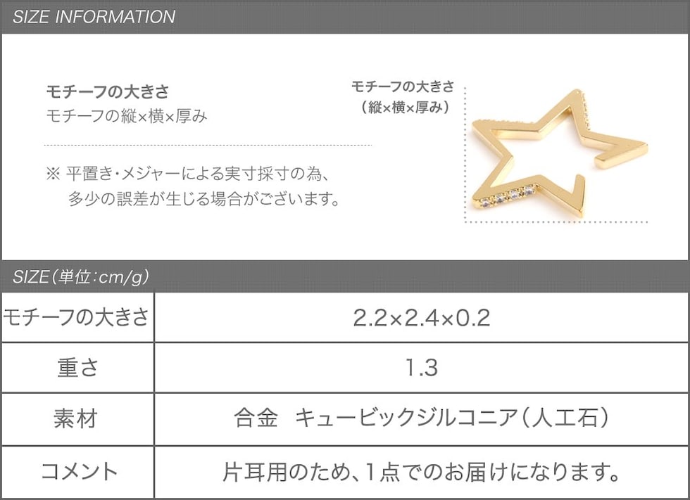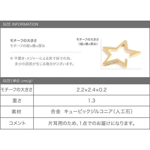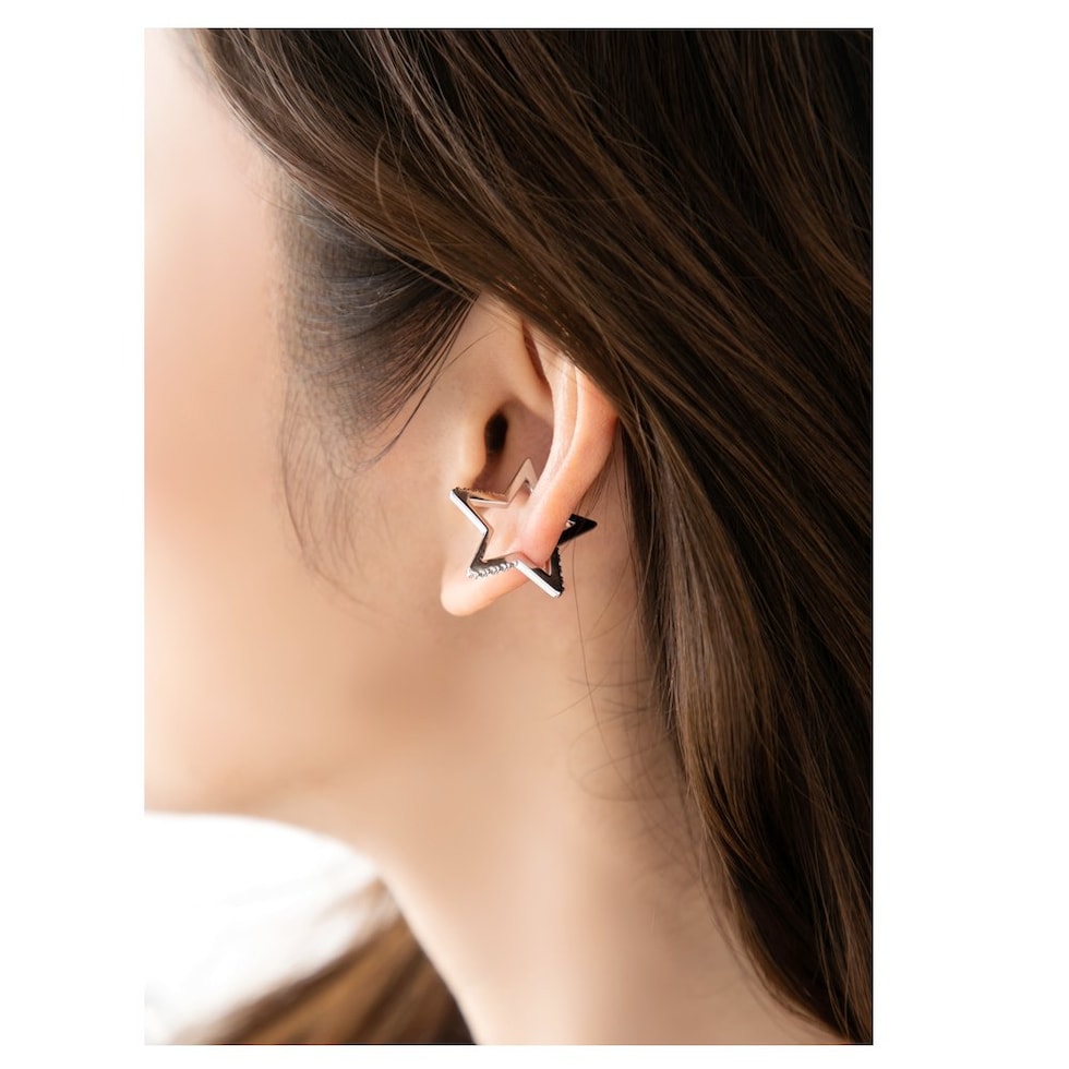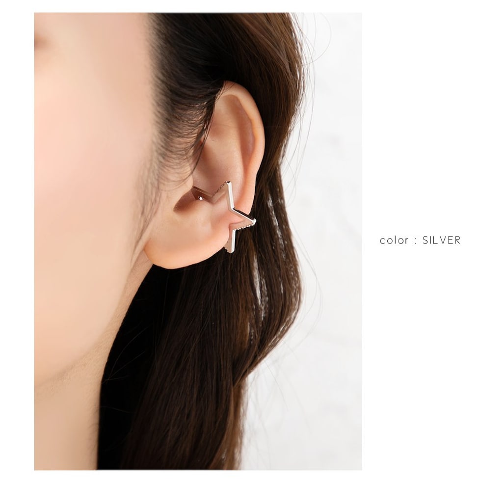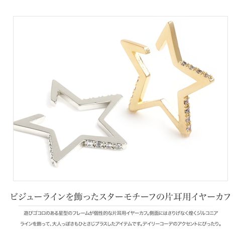 遊びゴコロのある星型のフレームが個性的な片耳用イヤーカフ。