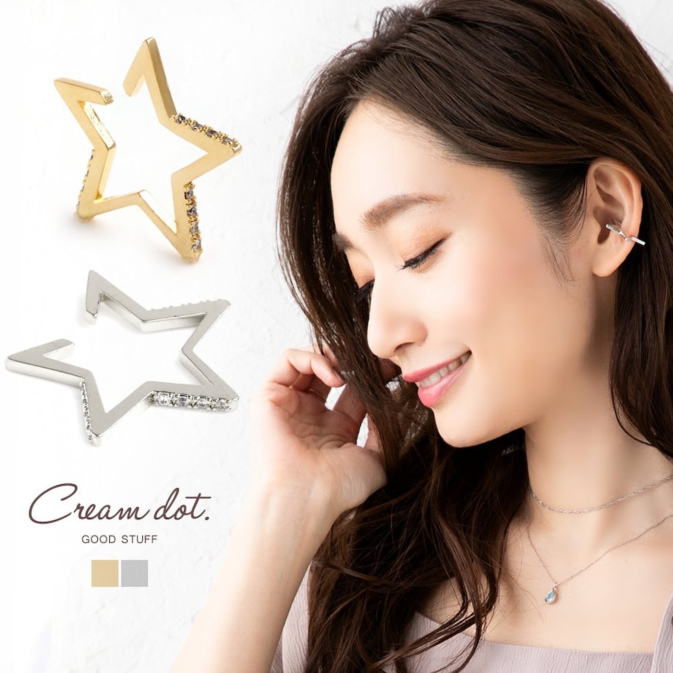 イヤーカフ レディース イヤーカフ イヤカフ 片耳用 メタル 星 スター キュービックジルコニア cream dot ゆうパケット [シルバー_フリーサイズ]