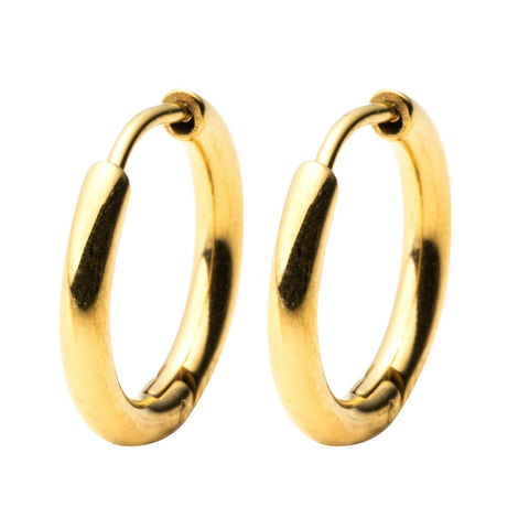 ピアス ステンレス 金属アレルギー サージカルステンレス レディース つけっぱなし フープ メンズ 小さめ 極小 大きめ 中折れ キャッチレス 両耳用 リング ブラック cream dot ゆうパケット [ゴールド_12mm]