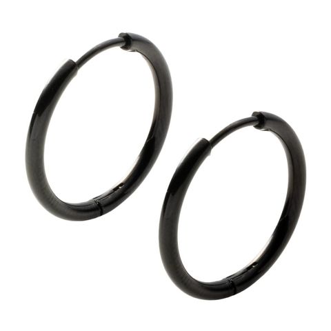 ピアス ステンレス 金属アレルギー サージカルステンレス レディース つけっぱなし フープ メンズ 小さめ 極小 大きめ 中折れ キャッチレス 両耳用 リング ブラック cream dot ゆうパケット [ブラック_16mm]
