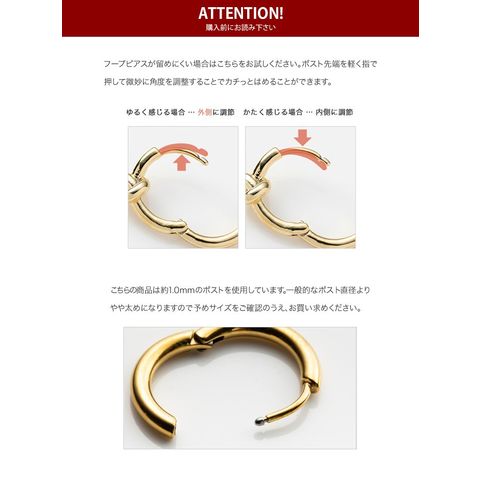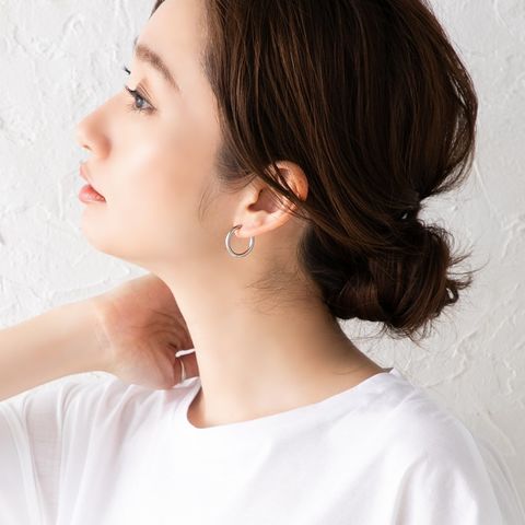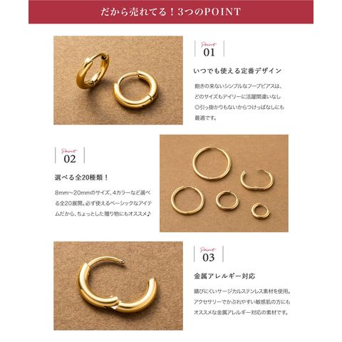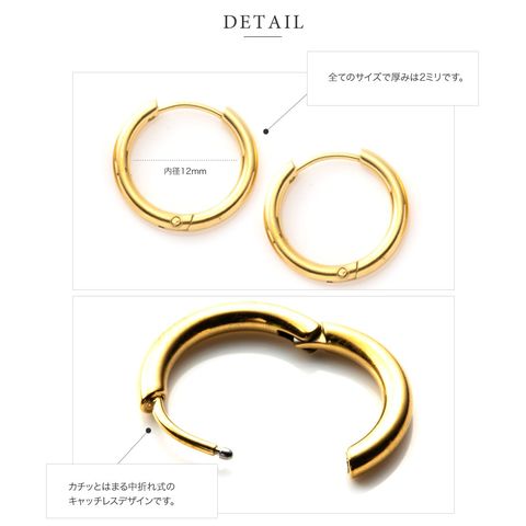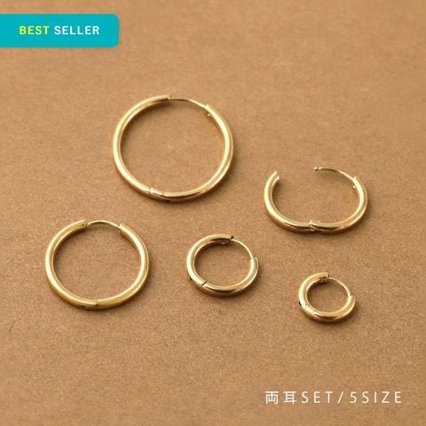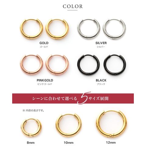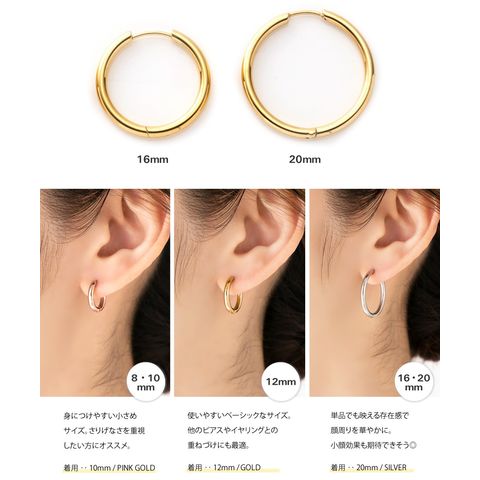 5つのサイズから選べてシンプルで使いやすいキャッチレスフープピアス。