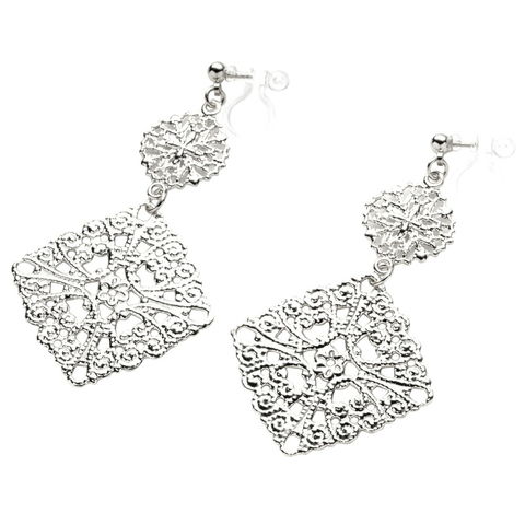 繊細な透かし模様のモチーフを2つ連ねた大ぶりなピアス/イヤリング。