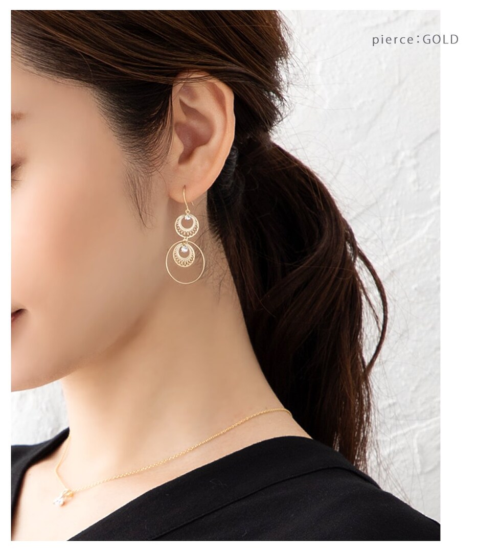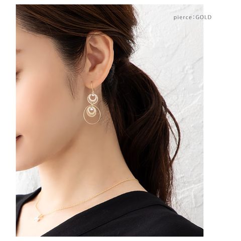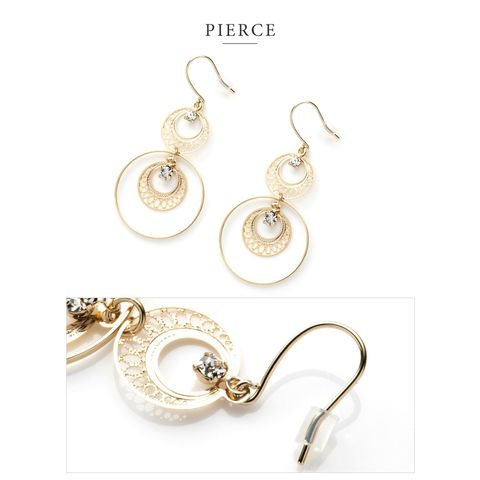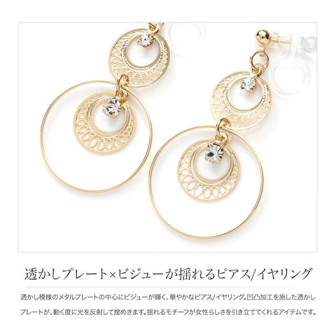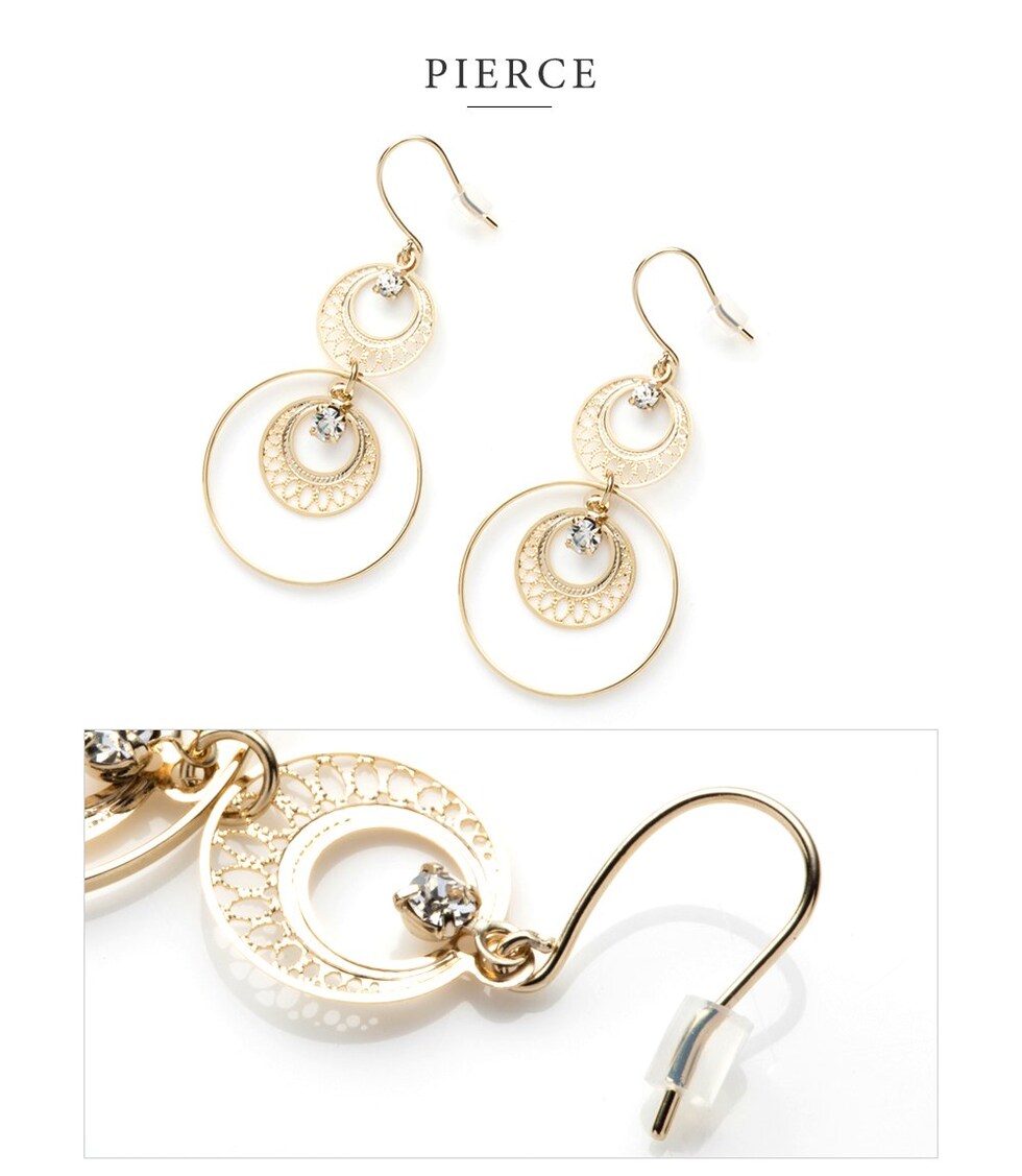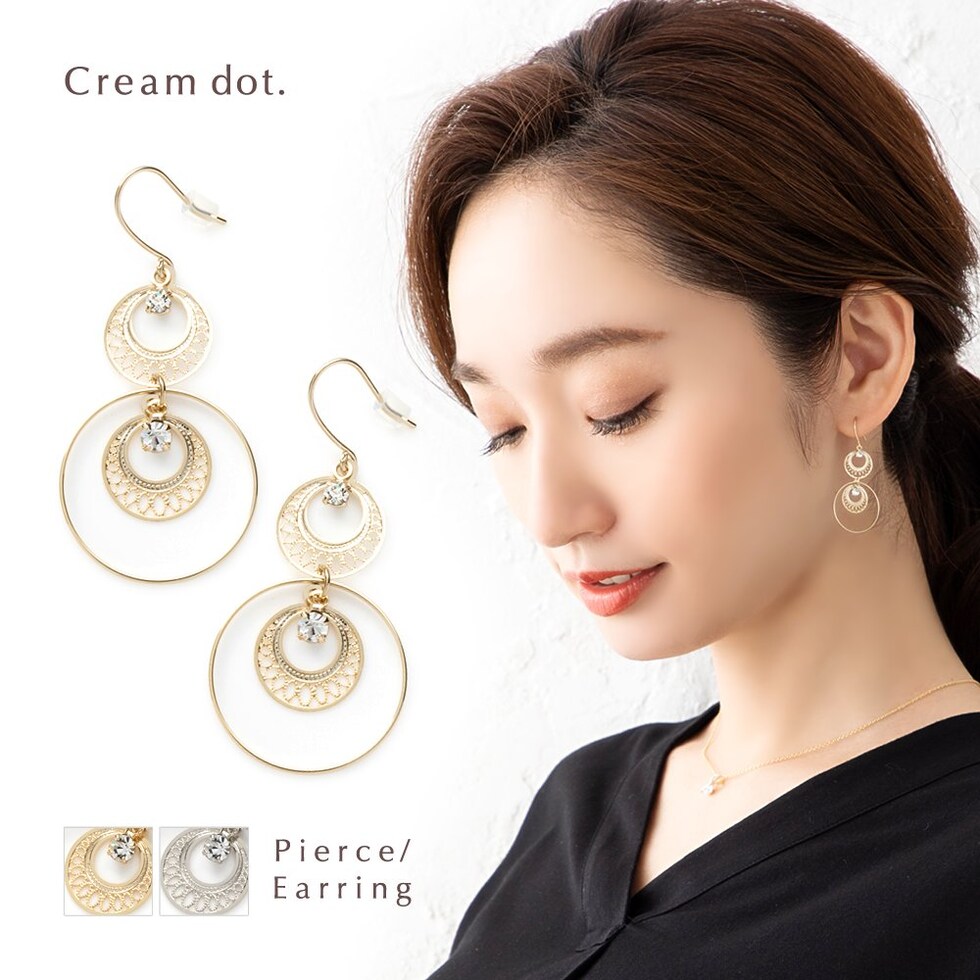 ピアス イヤリング レディース フック 揺れる 透かしプレート ビジュー サークル cream dot ゆうパケット [ゴールド_ピアス]