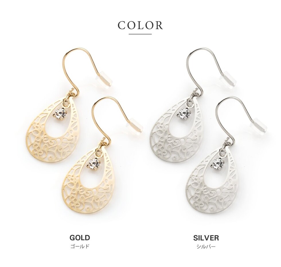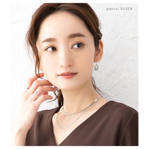 ピアス イヤリング レディース フック 揺れる 透かしプレート 一粒ビジュー cream dot ゆうパケット [シルバー_ピアス]