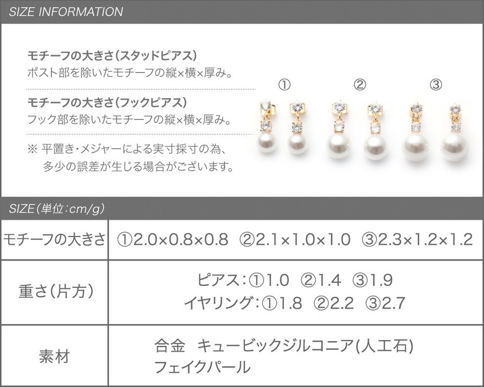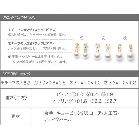 イヤリング:【1】1.8g【2】2.2g【3】2.7g