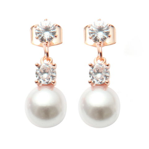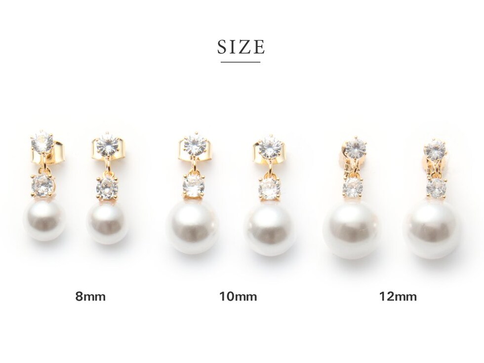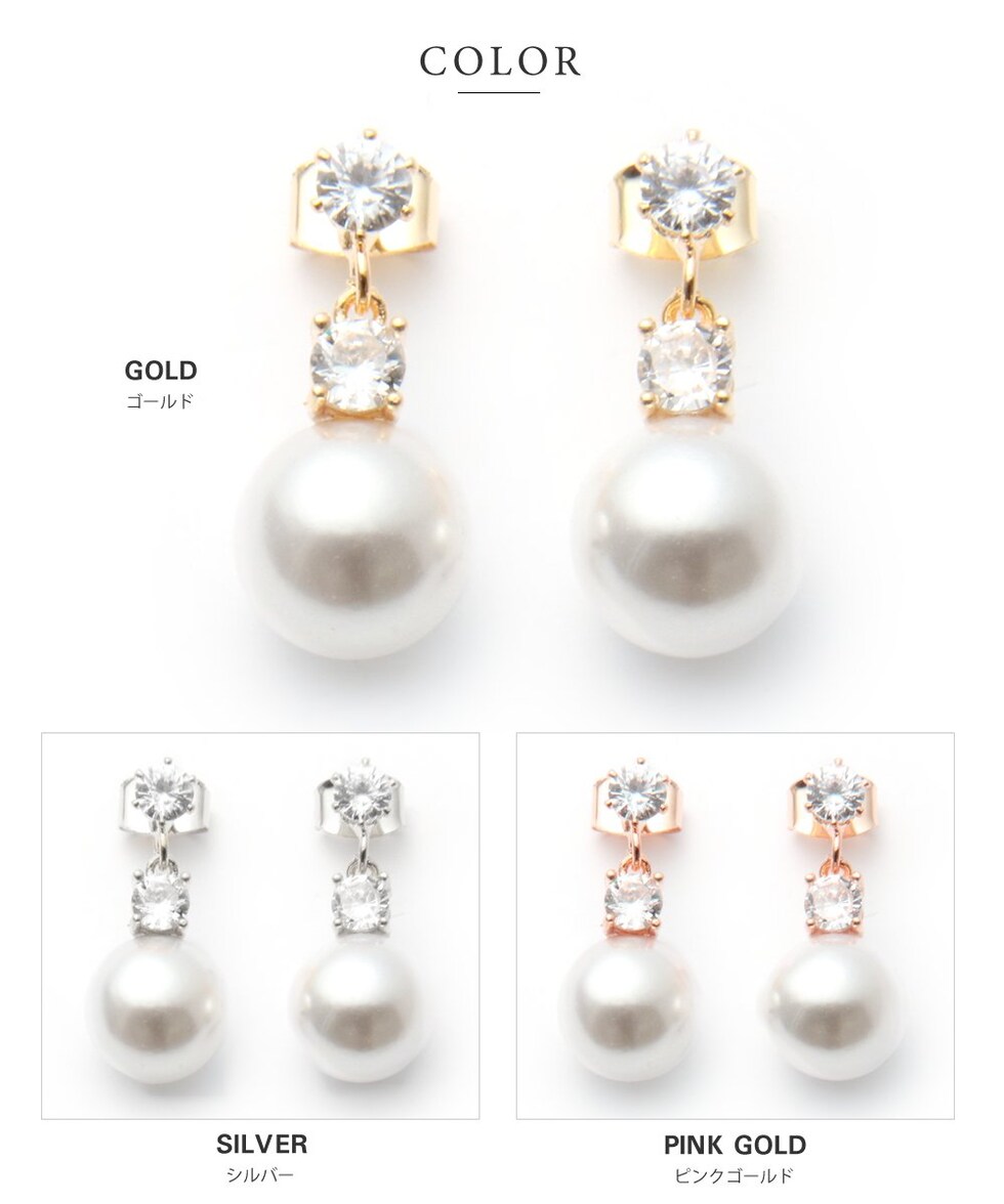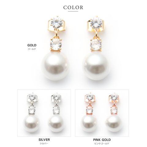 ピアス イヤリング レディース ネジ式 キュービックジルコニア ビジュー パール 8mm 10mm 12mm cream dot ゆうパケット [8mm:ピンクゴールド_ピアス]