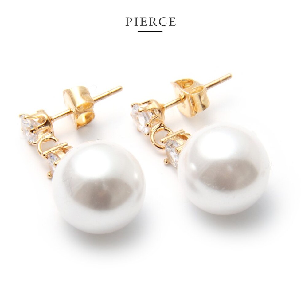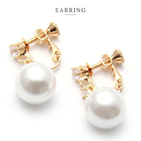 一粒のパールがコロンと揺れるピアス/イヤリング。