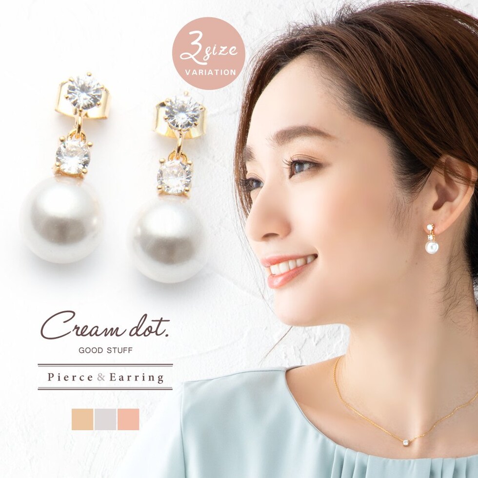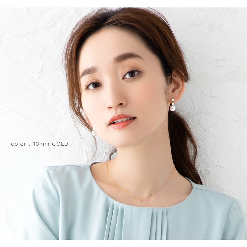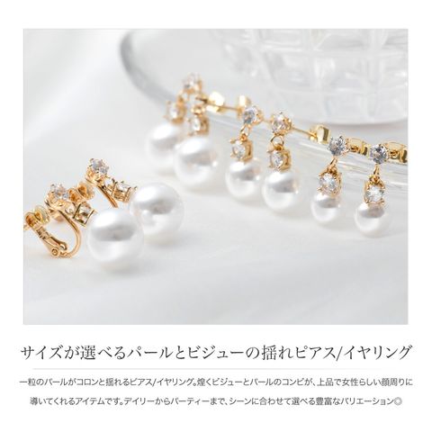 煌くビジューとパールのコンビが、上品で女性らしい顔周りに導いてくれるアイテムです。