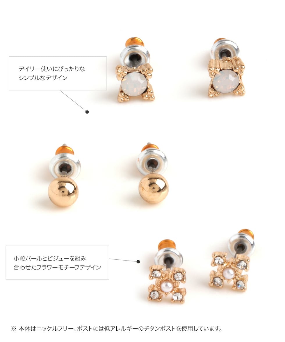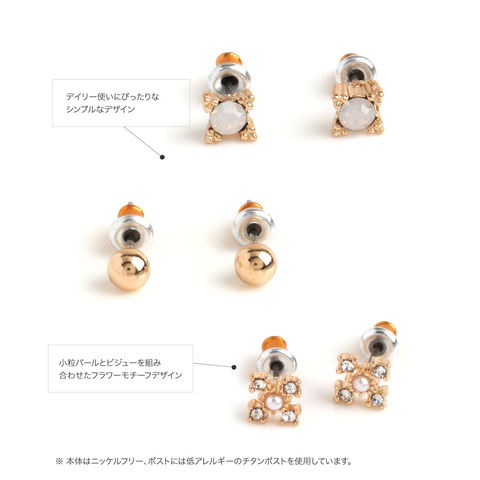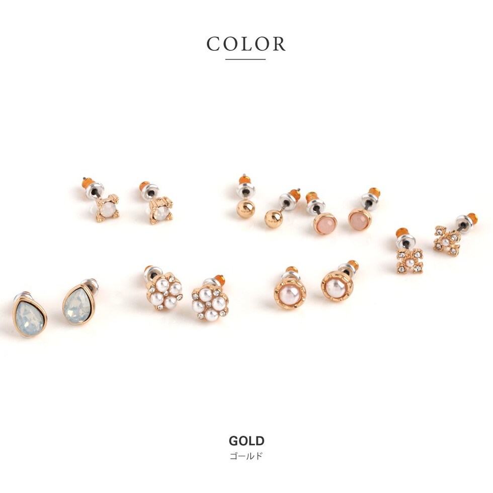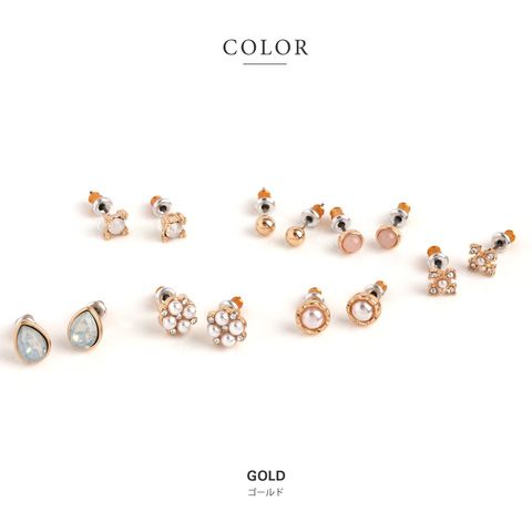 ピアス 金属アレルギー ニッケルフリー レディース 7点セット 小さい 1week 一週間 日替わり ボール スタッド パール ドロップ キュービックジルコニア セカンド cream dot ゆうパケット [ゴールド_アソート]