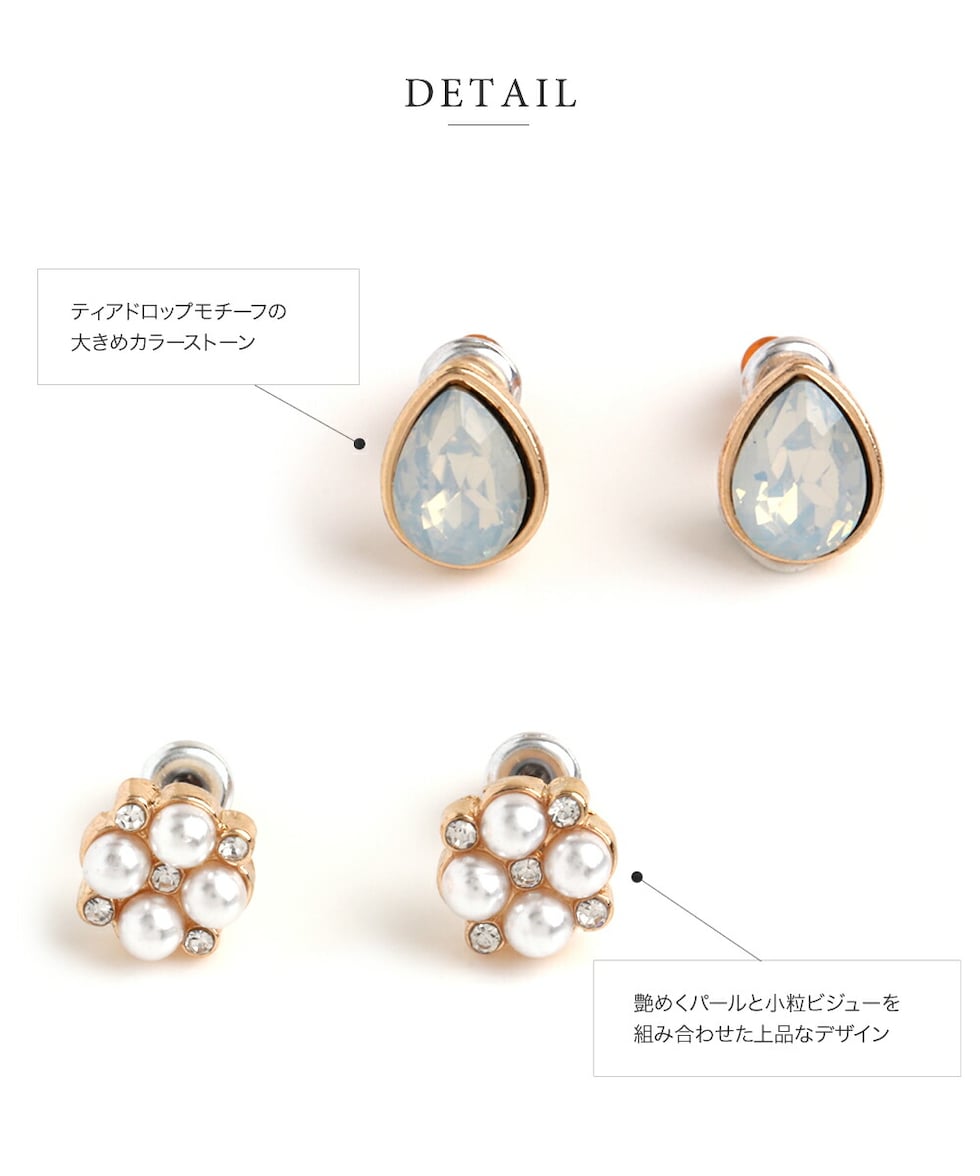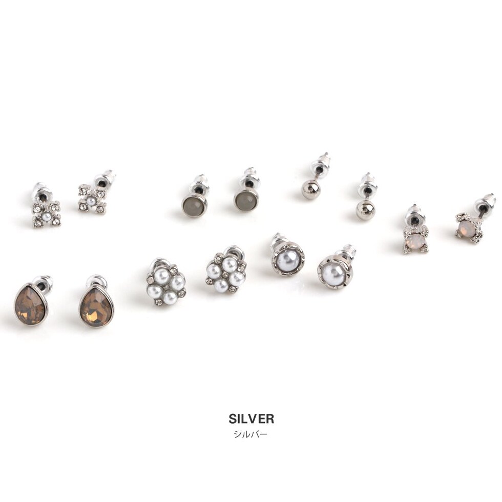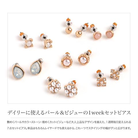 艶めくパールやカラーストーン・煌めくカットビジューなど大人上品なデザインを揃えた、1週間毎日変えられる7点セットピアス。