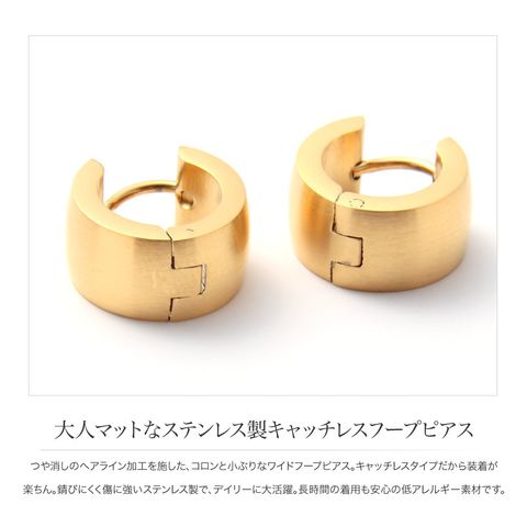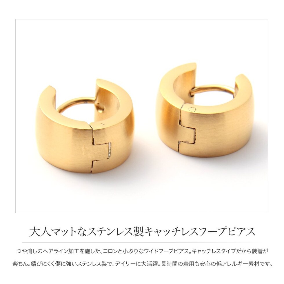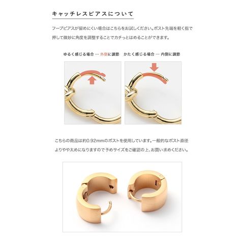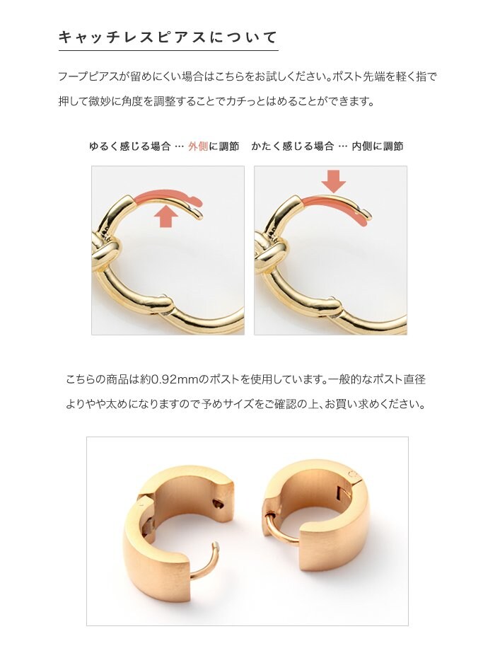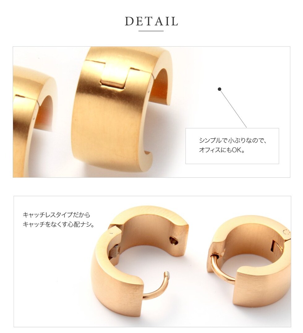ピアス ステンレス 金属アレルギー サージカルステンレス レディース フープ メンズ 中折れ キャッチレス 両耳用 リング 開閉式 小ぶり マット cream dot ゆうパケット [ピンクゴールド_ピアス]
