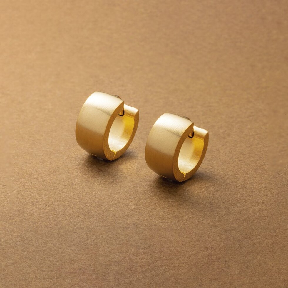 つや消しのヘアライン加工を施した、コロンと小ぶりなワイドフープピアス。