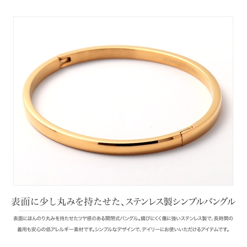 バングル ステンレス 金属アレルギー サージカルステンレス レディース つけっぱなし ボタン式 艶 開閉式 メンズライク cream dot ゆうパケット [ピンクゴールド_ワンサイズ]