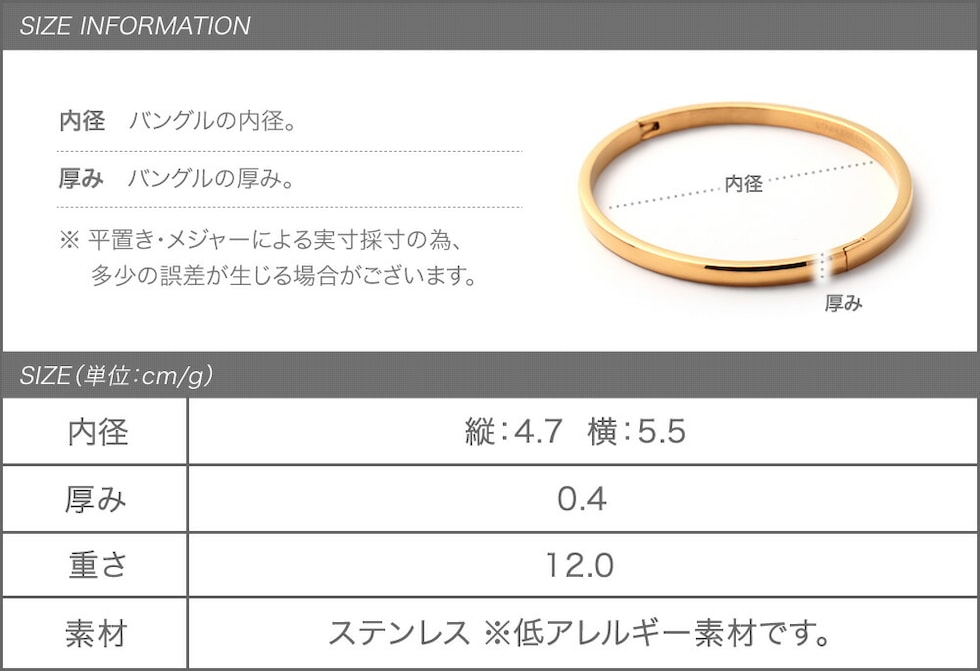 表面にほんのり丸みを持たせたツヤ感のある開閉式バングル。