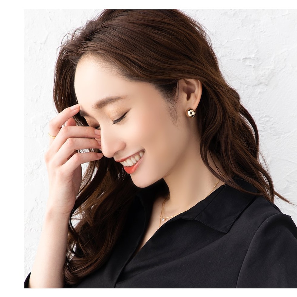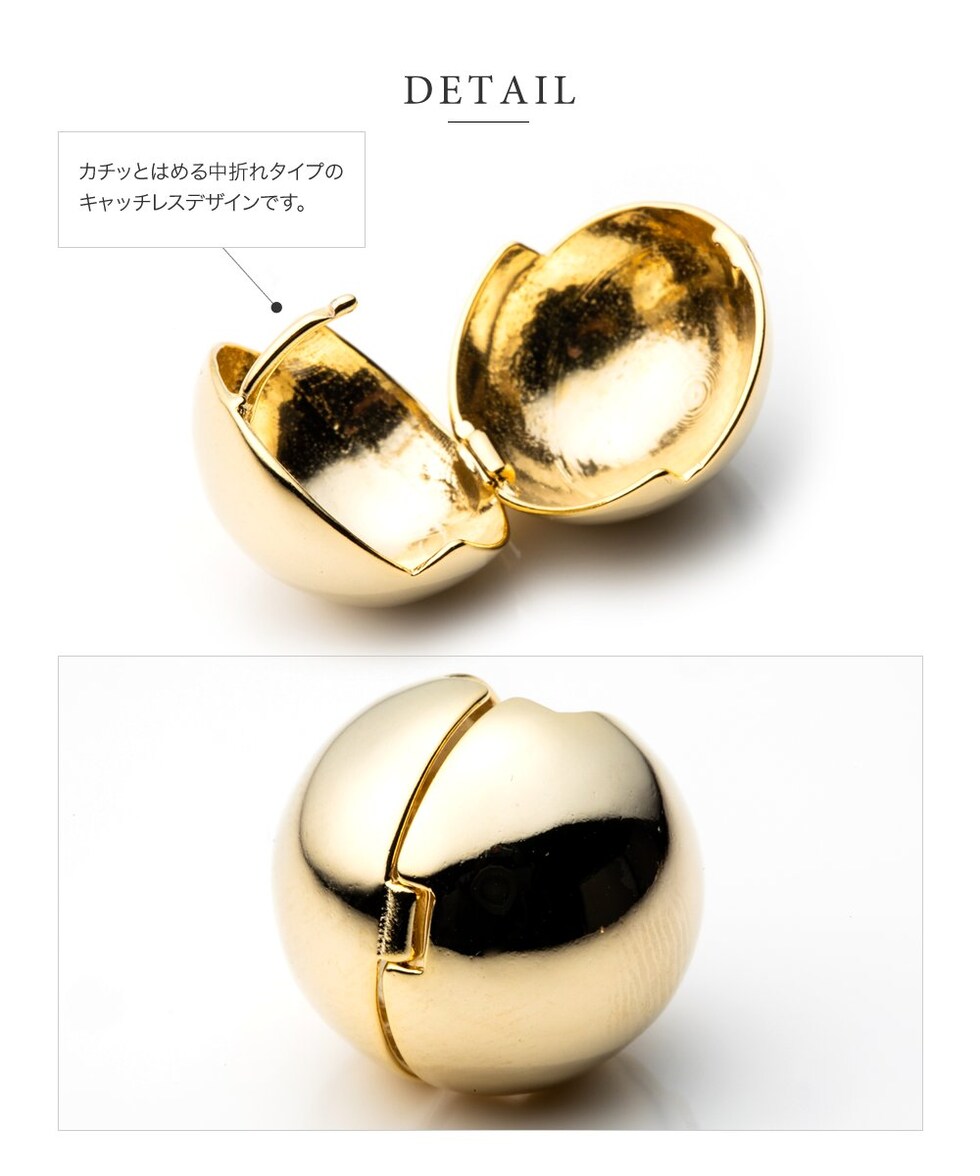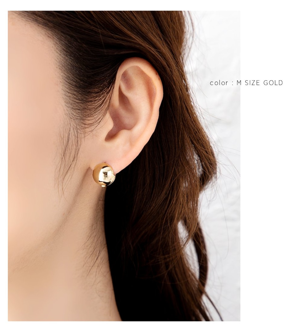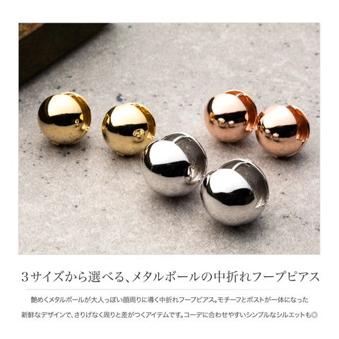 艶めくメタルボールが大人っぽい顔周りに導く中折れフープピアス。