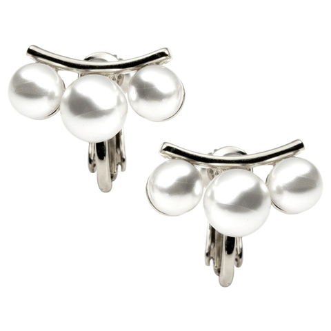 大きさの異なる3つの艶めくパール・煌めくビジューを連ねたスタッドピアス/イヤリング。