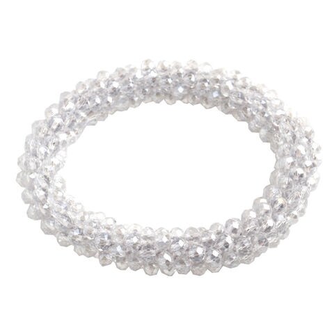 たっぷりのクリスタルビーズを編み上げたハンドメイドヘアゴム。