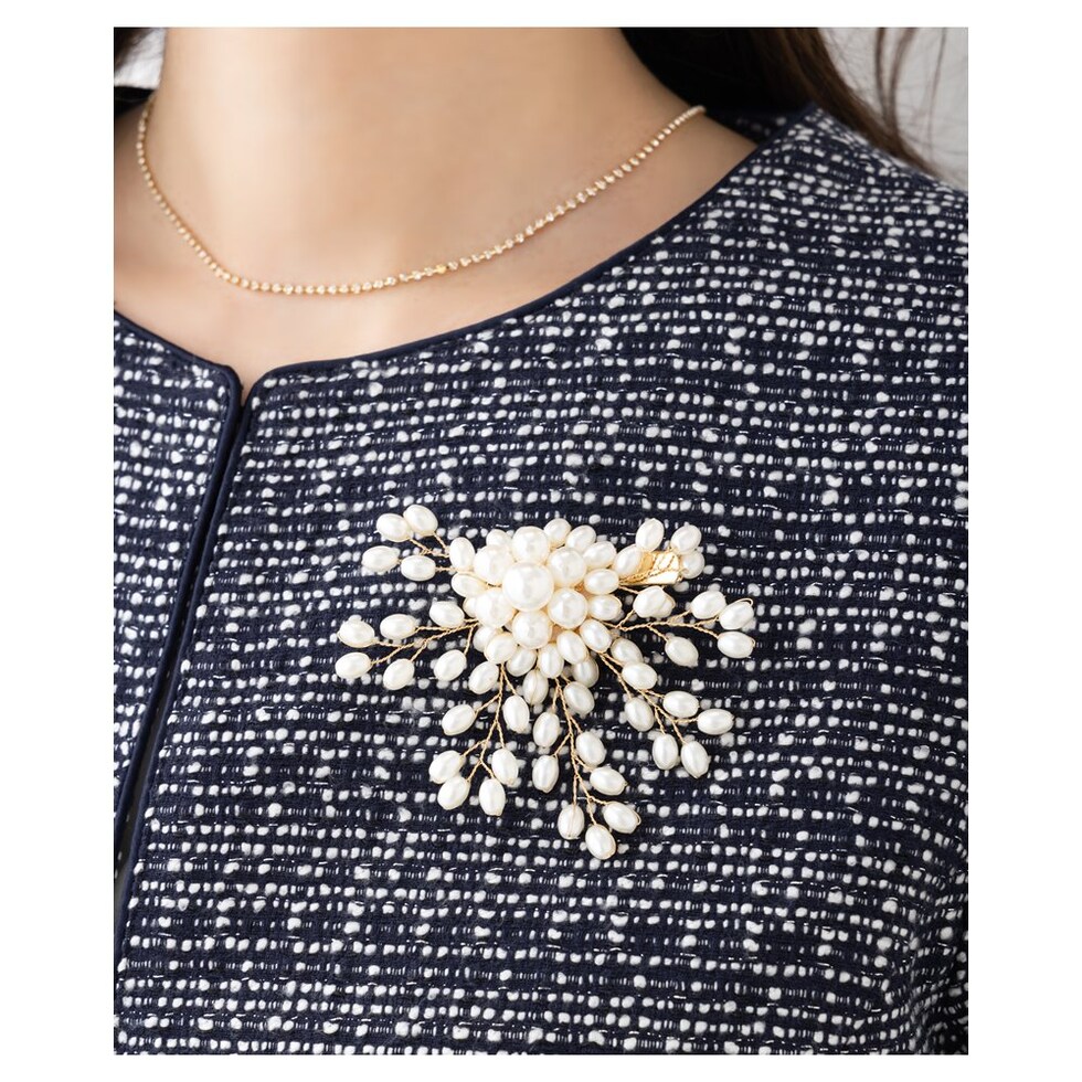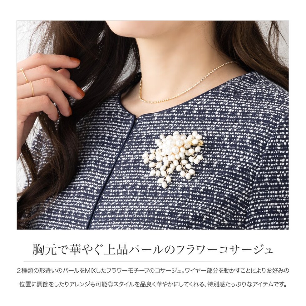 2種類の形違いのパールをMIXしたフラワーモチーフのコサージュ。