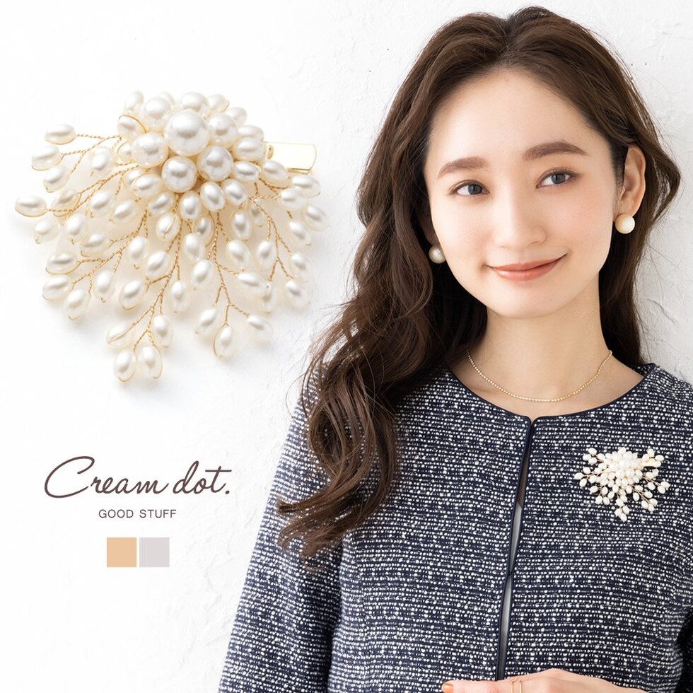 コサージュ ブローチ フォーマル 卒業式 卒園式 入学式 入園式 ママスーツ パール 花 ワイヤーフラワー ピン クリップ cream dot ゆうパケット [シルバー_ワンサイズ]
