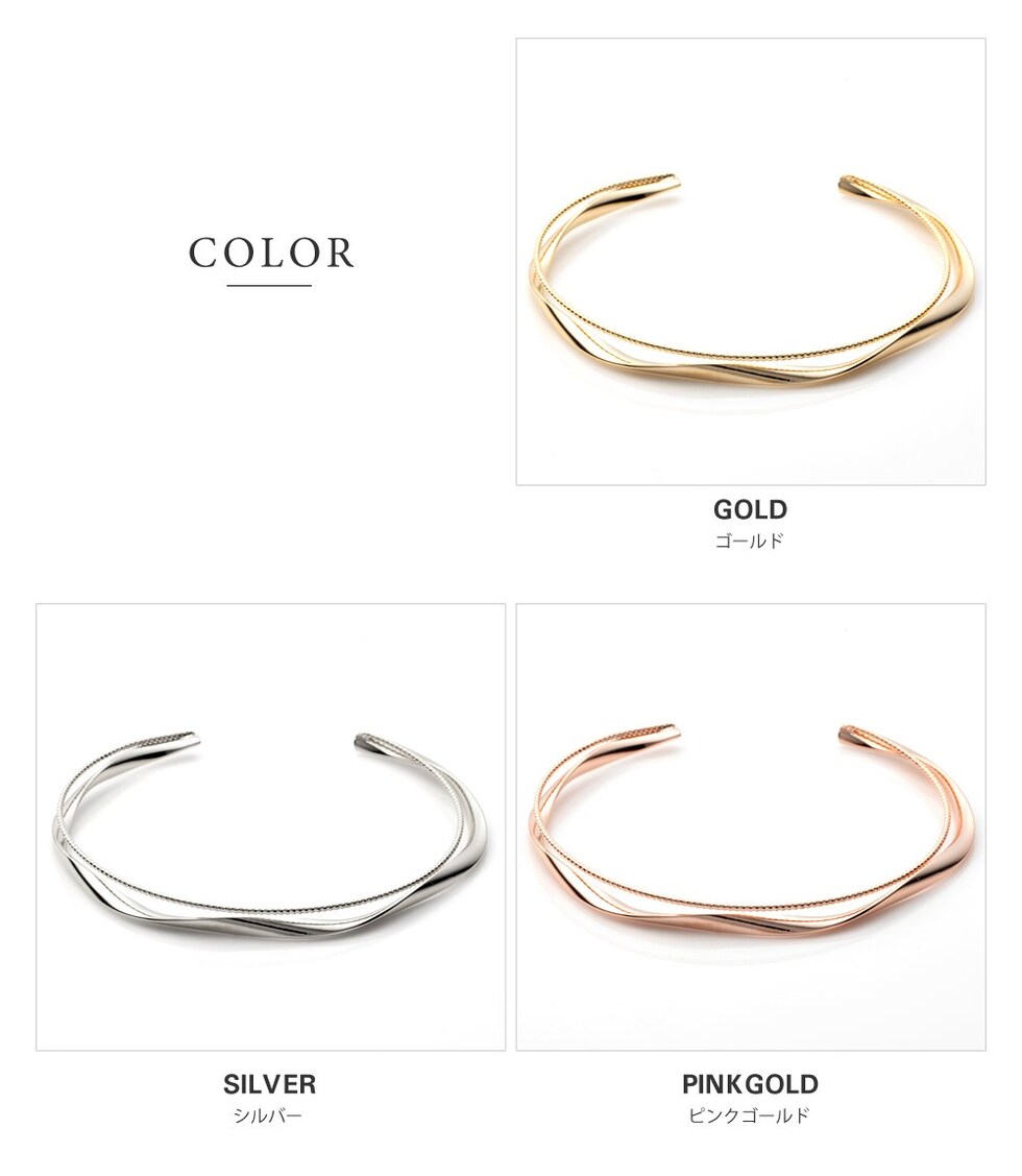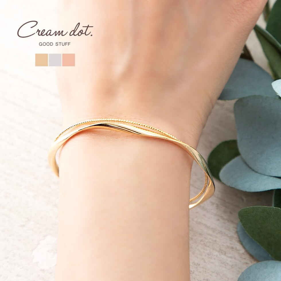 バングル レディース 細め レイヤード風 二連 2連 ウェーブ ライン メタル 艶 ひねり cream dot ゆうパケット [ピンクゴールド_フリーサイズ]