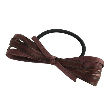 2種類のリボンが幾重にも重なり合った、上品さが印象的なヘアゴム。
