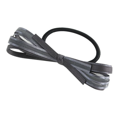 2種類のリボンが幾重にも重なり合った、上品さが印象的なヘアゴム。