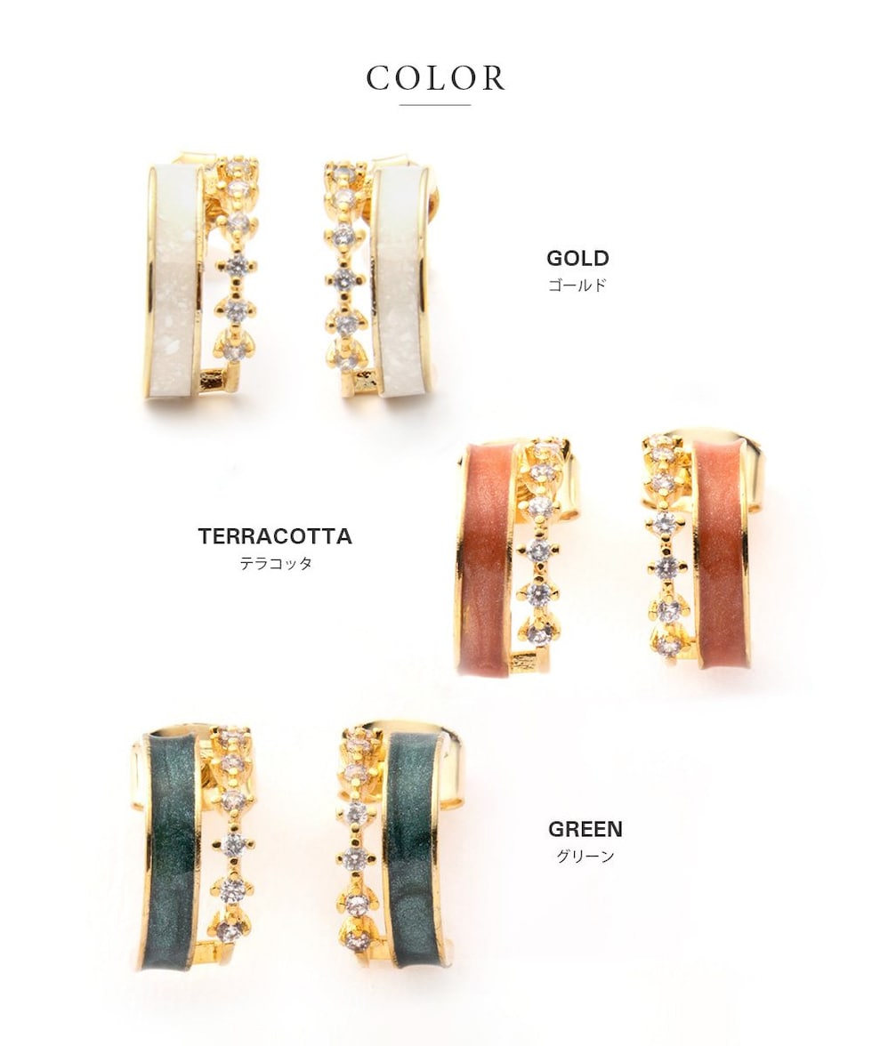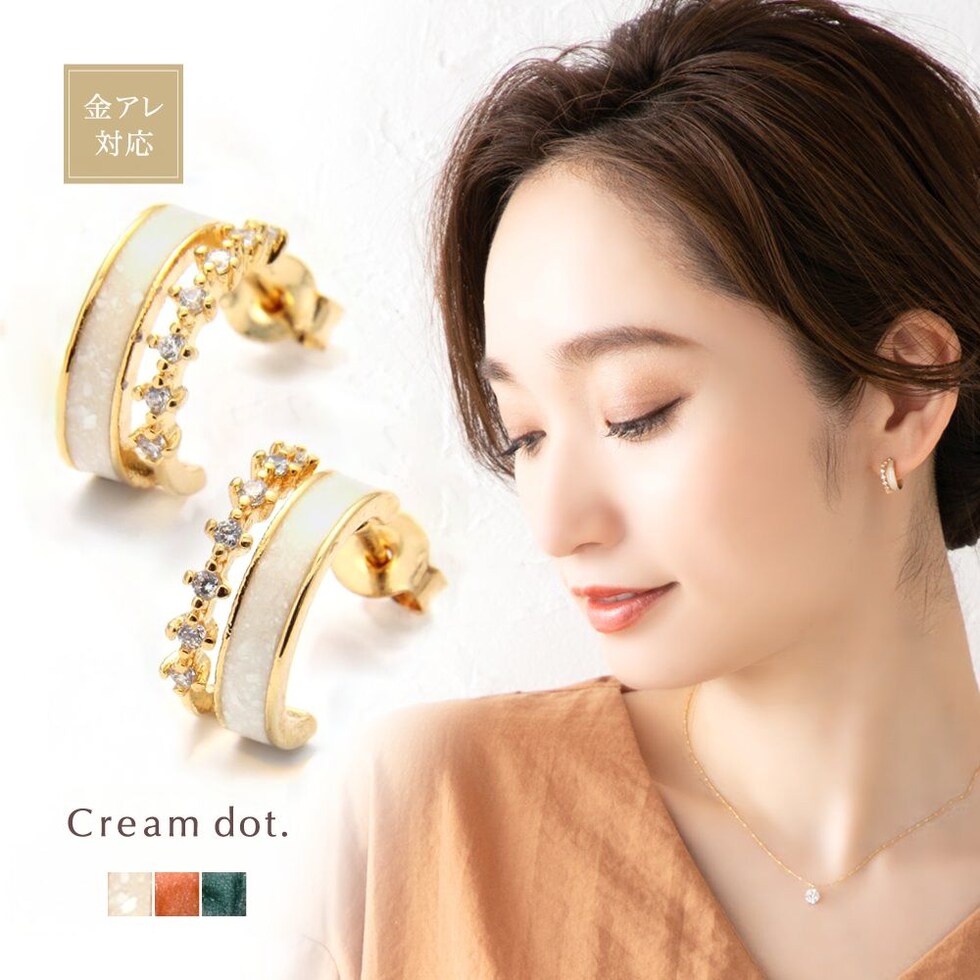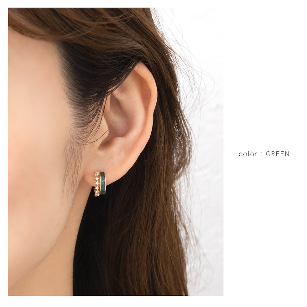 ピアス イヤリング 金属アレルギー ニッケルフリー レディース フープ キュービックジルコニア グリーン cream dot ゆうパケット [ゴールド_ピアス]